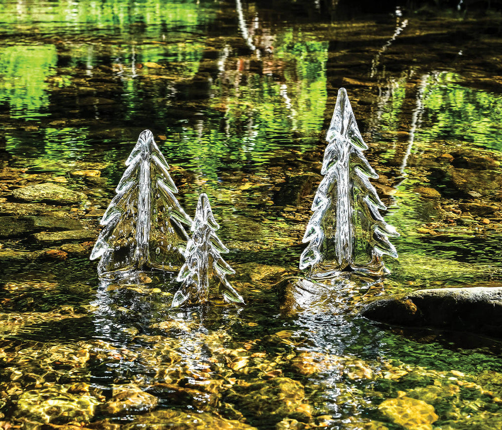 The beauty of nature meets the art of glassblowing. This classic Evergreen is alive with variations from its handmade process. No two are alike.The BUBBLE EVERGREEN is available in several tree heights.