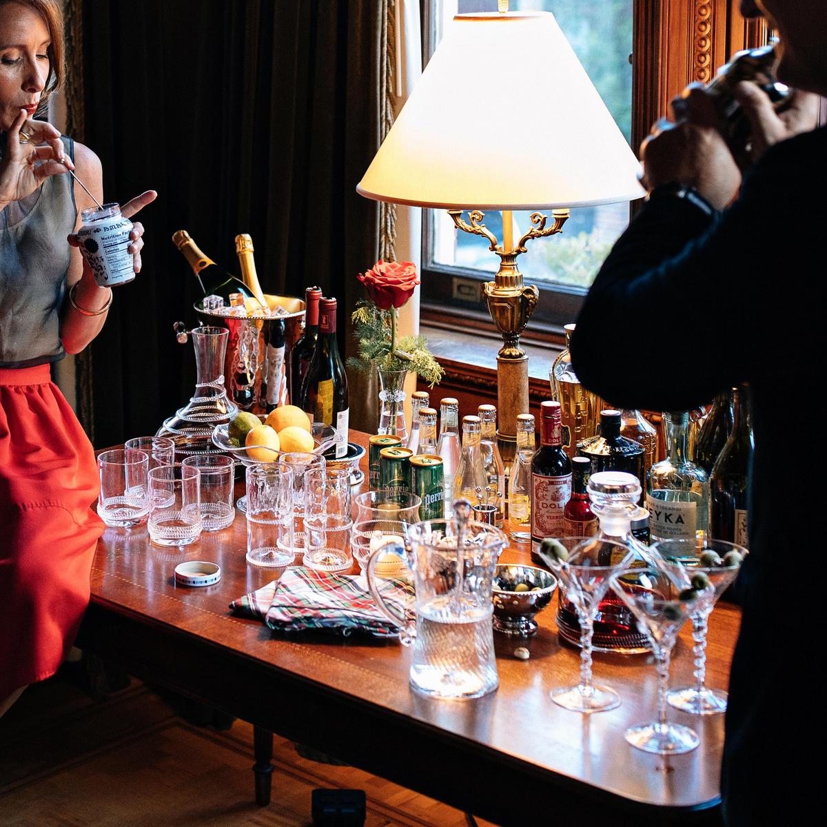 From our Graham Collection- Craft a classic cocktail for a crowd with this bar pitcher with stirrer - crowned with a simple thread and single berry, dressed in optic glass from the waist down and belted with a charming sash.