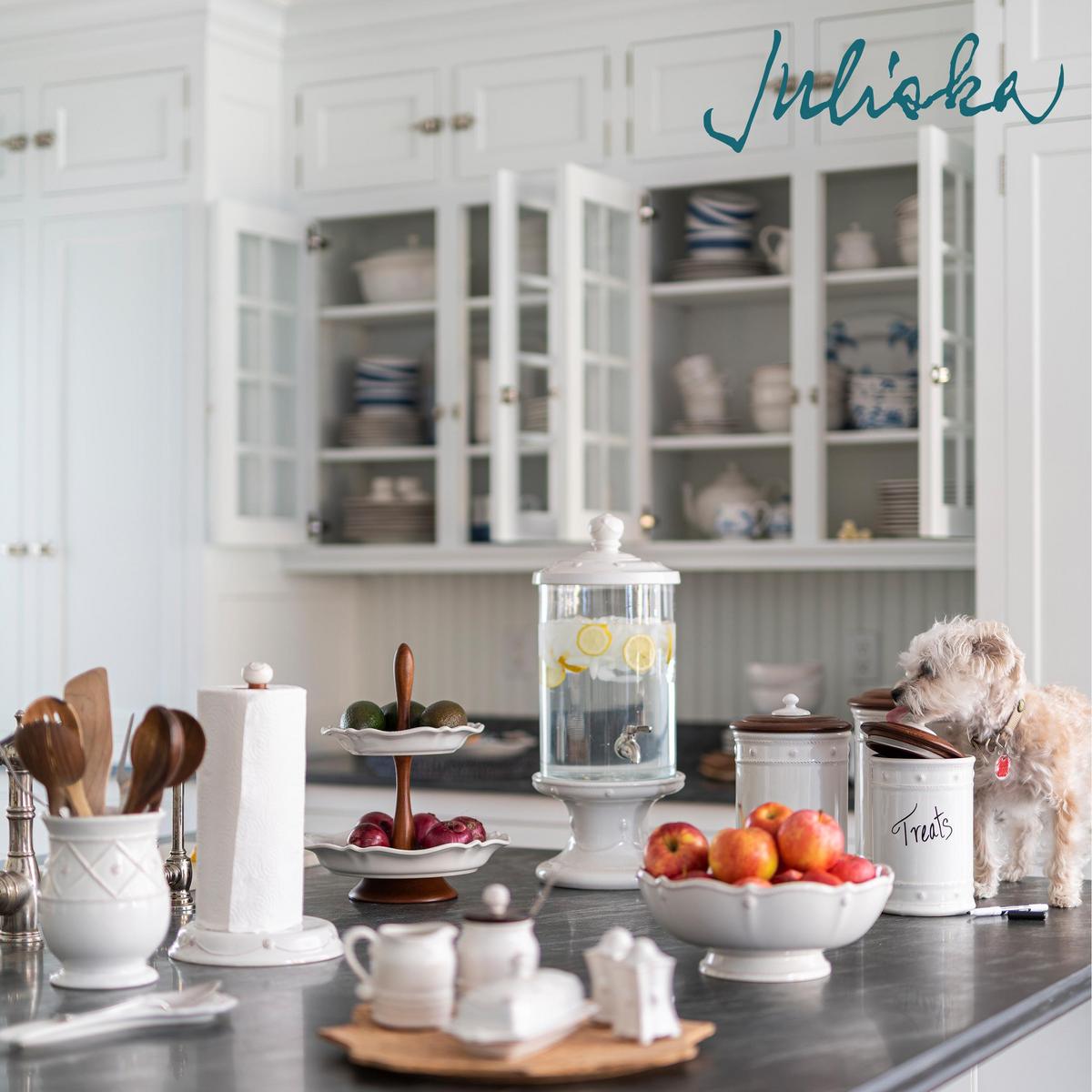 Whitewash-glazed paper towel holder, decorated with our subtle thread and berries motif, complete with wooden spool center. A nod to our signature Bohemian glassware collection, this is a practical instrument there for dribbles on the countertop or surprise spills while cooking.