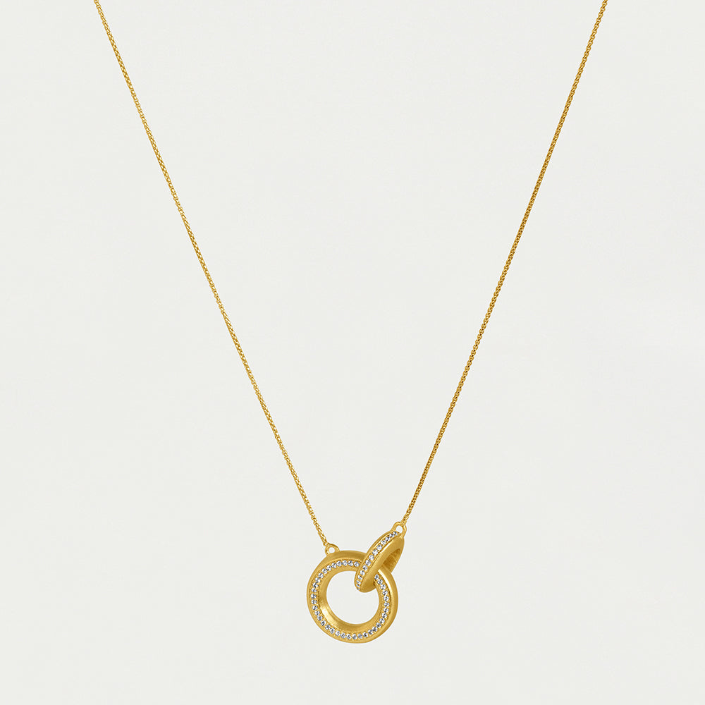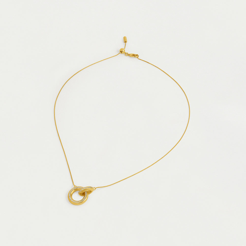Suspended from a dainty softbox chain, two interconnected loops add dimension to your neckline, with light-catching pavé gemstones to elevate it all.