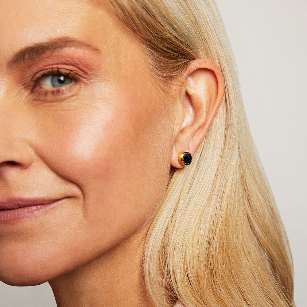 Signature Midi Knockout Studs - Gold / Black Onyx