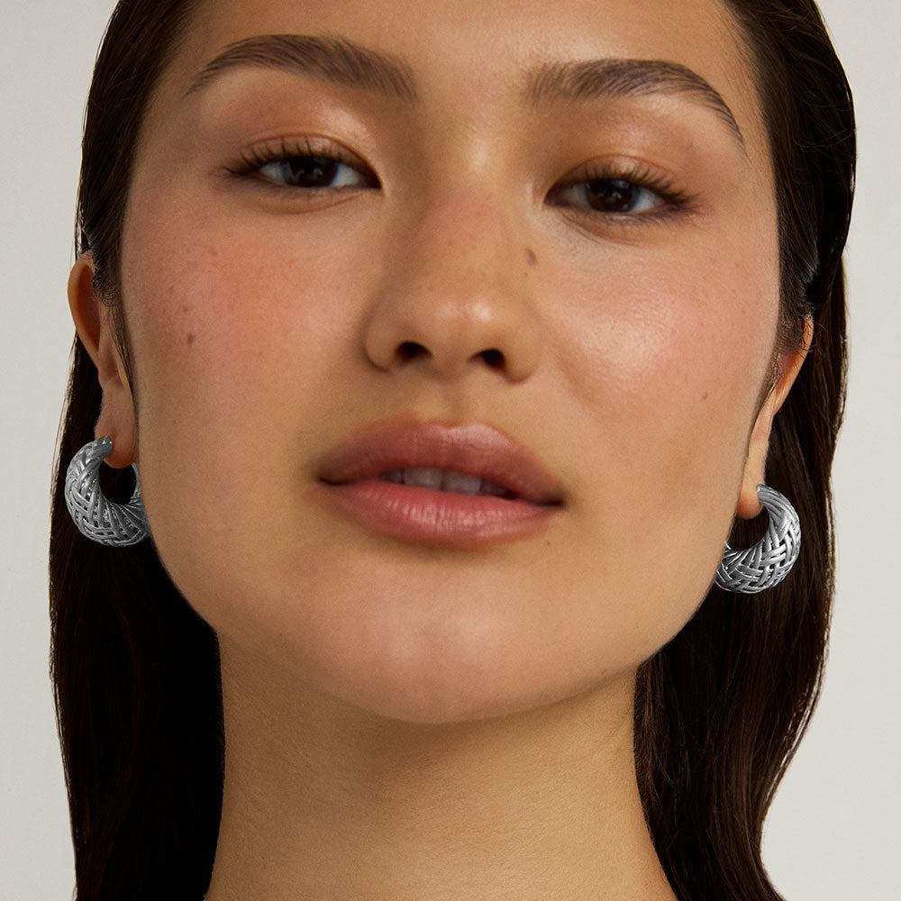 Watch the compliments roll in with the lightweight Cinta Hoops. The bold crescent shape—brought together by a beautiful weaved design—comes hollowed out for complete ease of wear.