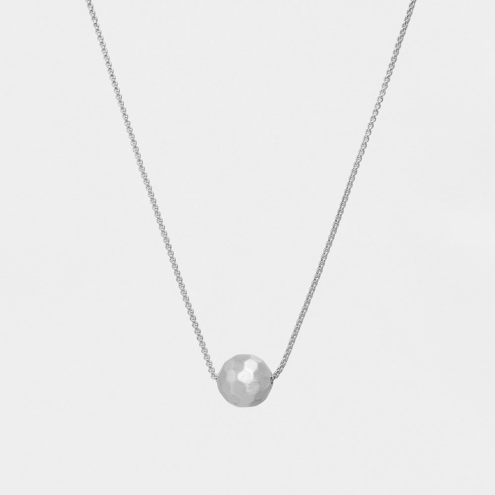 Every jewelry wardrobe needs a simple silver necklace that goes with everything. Hello, Disco Pendant. With hand-hammered facets, a luxe brushed finish, and slide closure for an adjustable length, this design is destined to be your everyday fave.