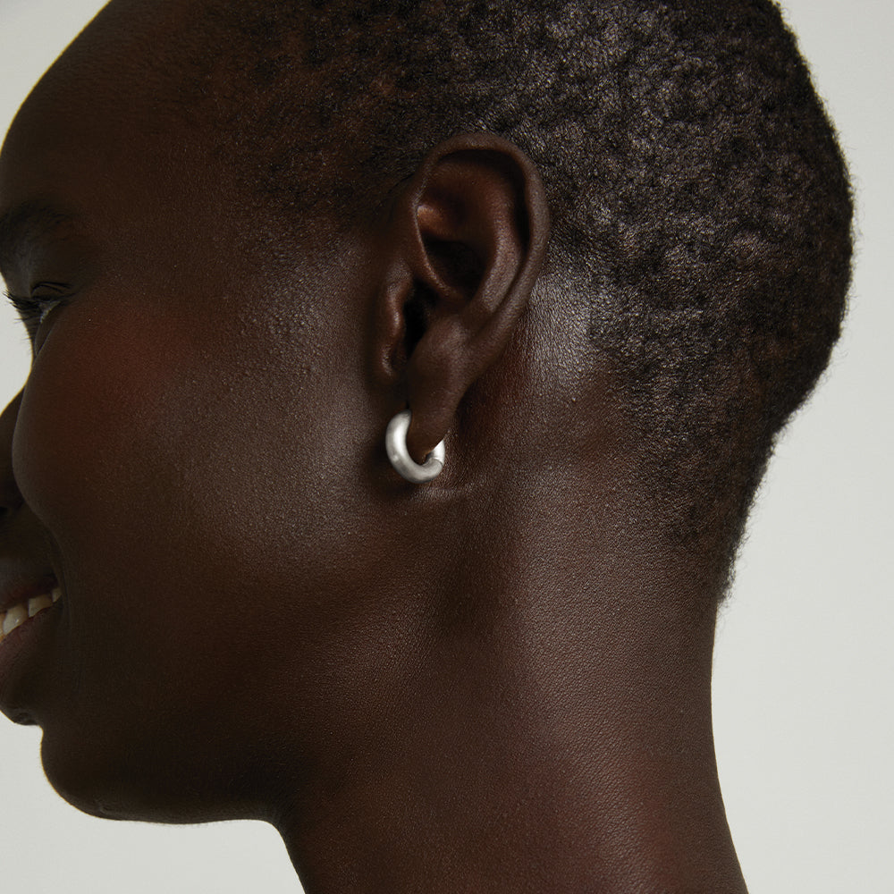 The easy-to-wear size and bold width of the Dune Huggies make them an instant classic. Complete with a secure hinged closure, these huggies exude cool when layered with Dune Hoops of any size.
