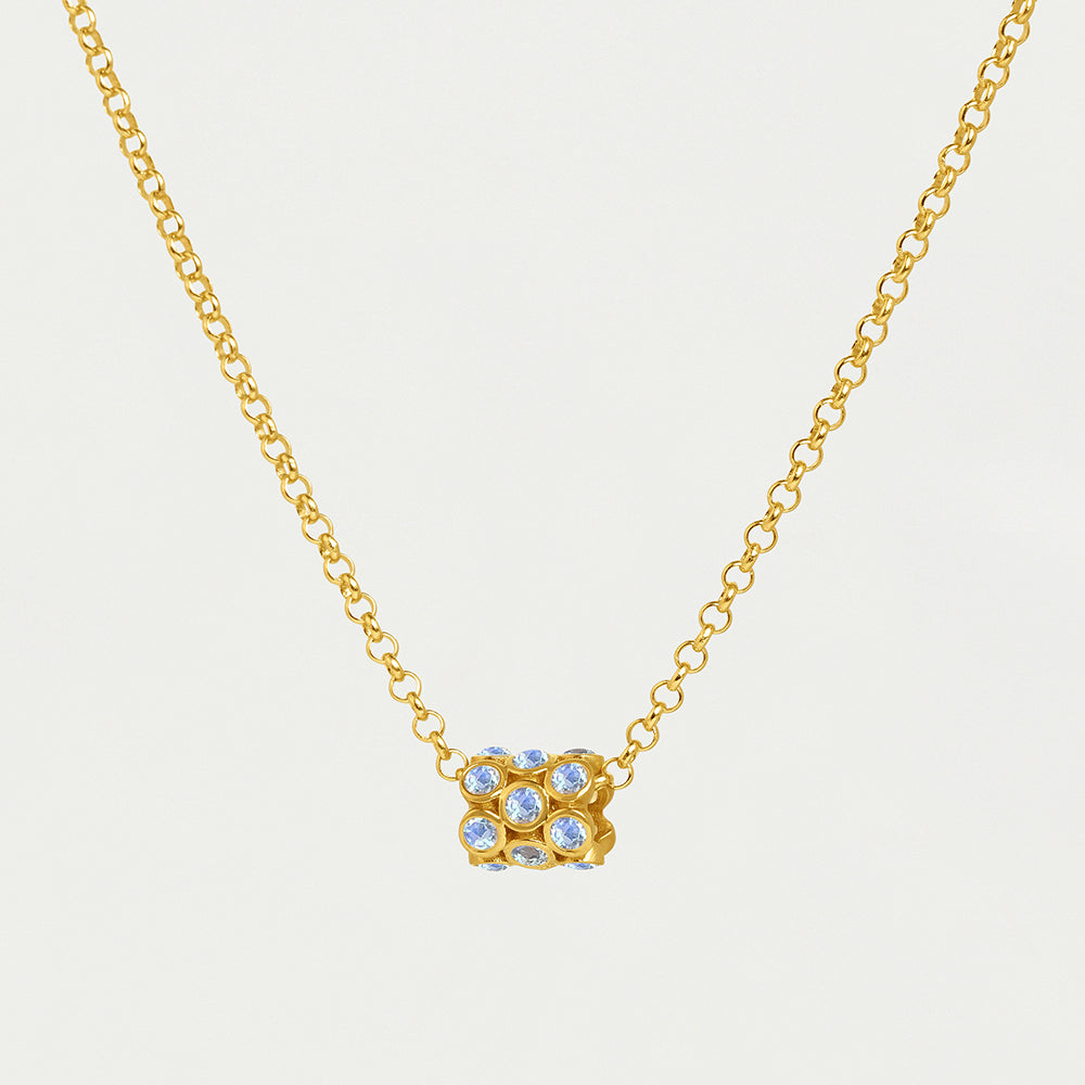 Add interest to your neckline with a cylinder of hand-cut Rainbow Moonstones centered on a versatile rolo chain. With our silicone slide closure, you can adjust the length so it hits right where you want it.