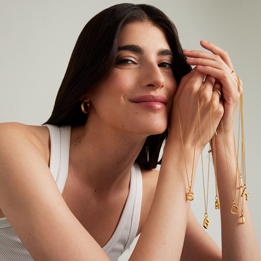 For a necklace stack that's truly you, layer in the Initial Pendant. The modern free-form shape hangs from a rolo chain with a silicone slider for adjustable length. Wear your own letter or a loved one's (or wrap it up as a thoughtful gift)—this handcrafted charm serves up style and sentiment.
