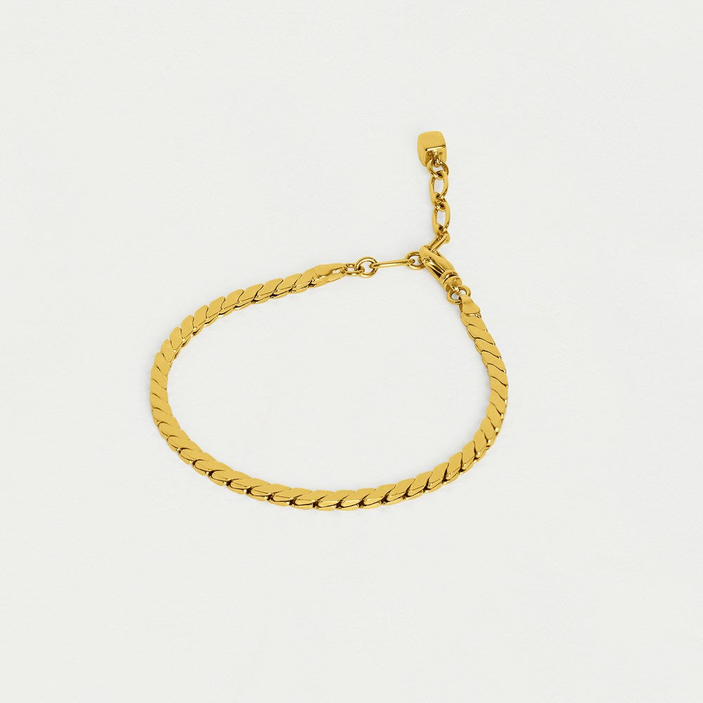 A flat chain with clean lines, diagonal links and bright, light-reflecting finish—this Scandi-inspired design elevates every outfit. Go minimalist and sport it solo, or use it as a base to build your dream stack.