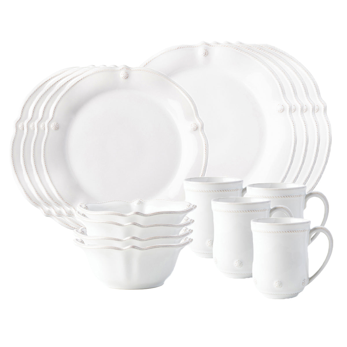 Adorned with a sprinkling of berries and fluted silhouette, this 16 piece setting includes: 4 dinner plates, 4 dessert/salad plates, 4 cereal/ice cream bowls and 4 cofftea cups.