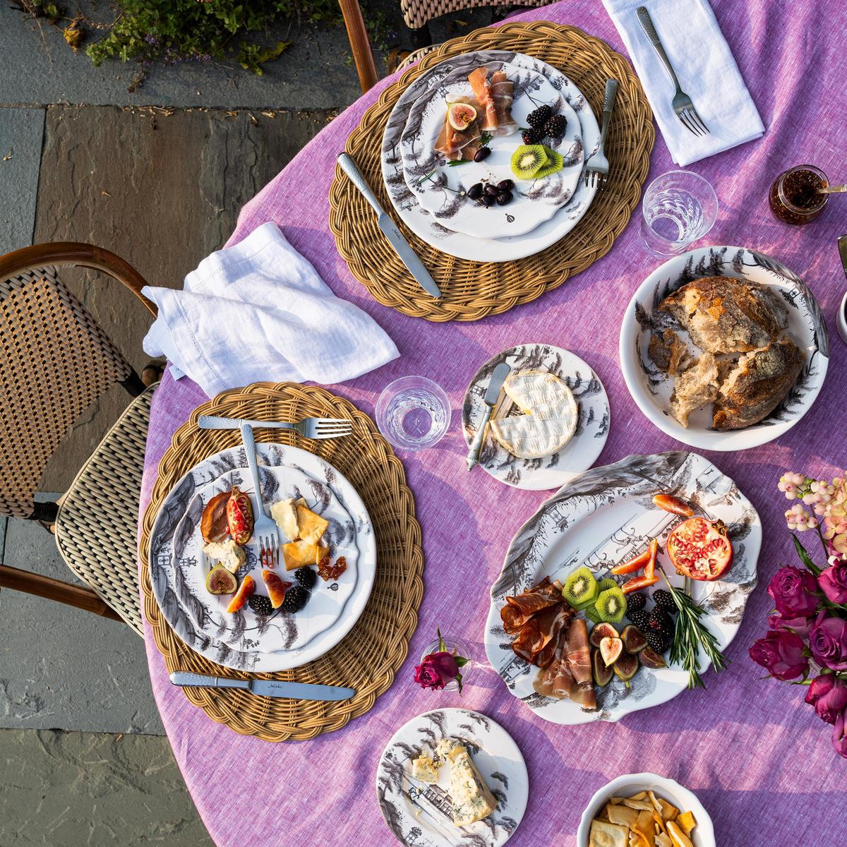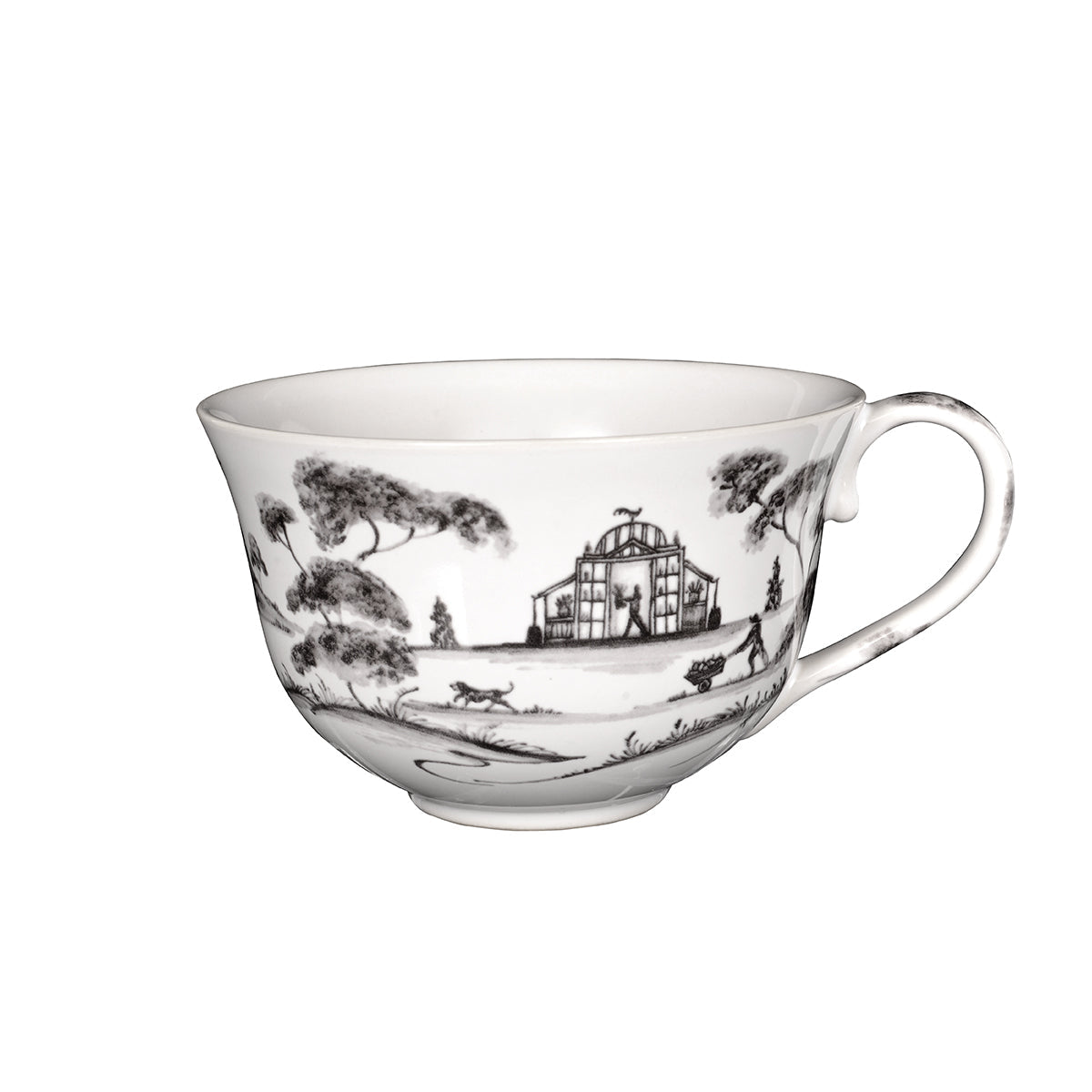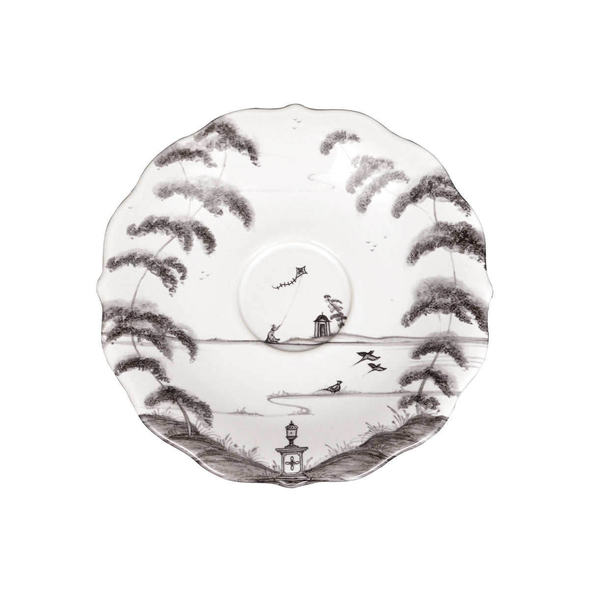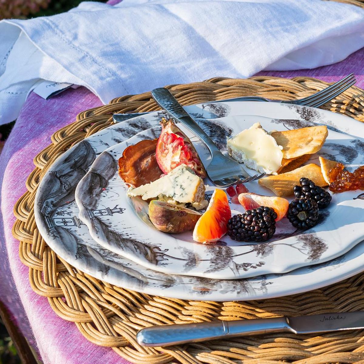 From our Country Estate Collection- Featuring narratives of the English Countryside, our five piece setting in flint contains a dinner plate, dessert/salad plate, side/cocktail plate, tea/coffee cup and saucer.