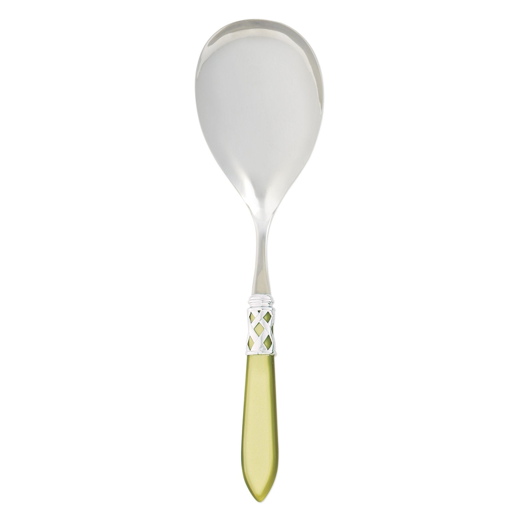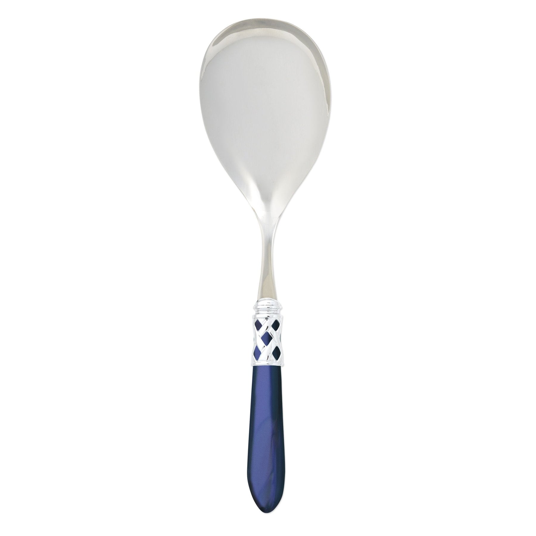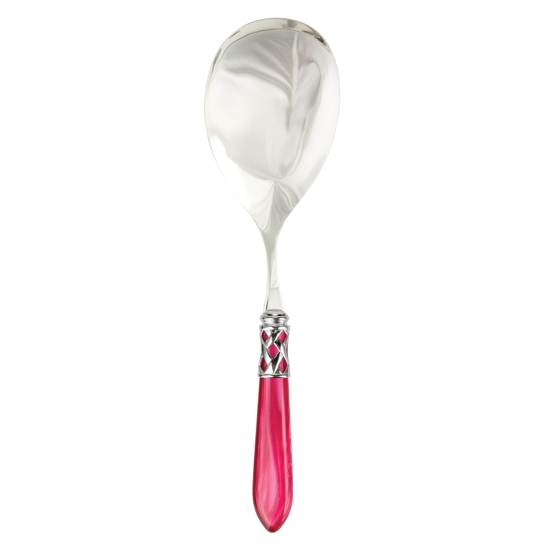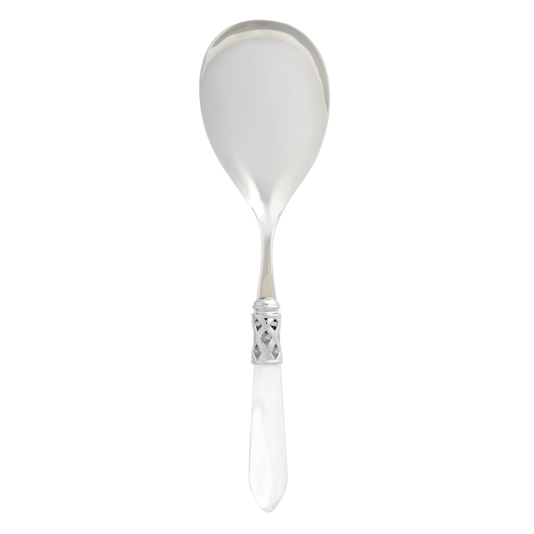 The Aladdin Brilliant Serving Spoon features elegant pearlized handles with the strength of high-grade acrylic and 18/10 stainless steel. This piece is also available in our antique finish.