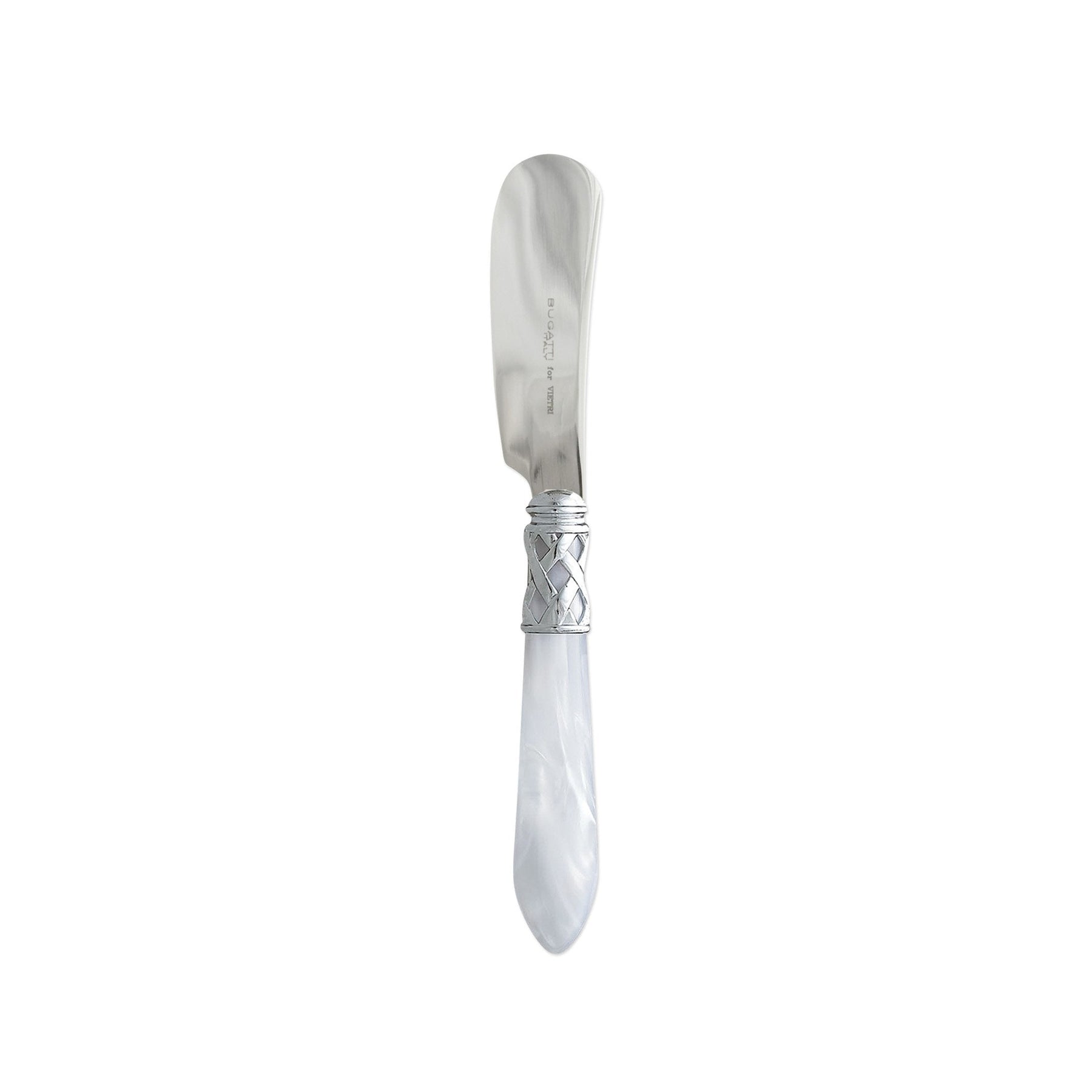The Aladdin Brilliant Small Spreader features elegant pearlized handles with the strength of high-grade acrylic and 18/10 stainless steel. This piece is also available in our antique finish.