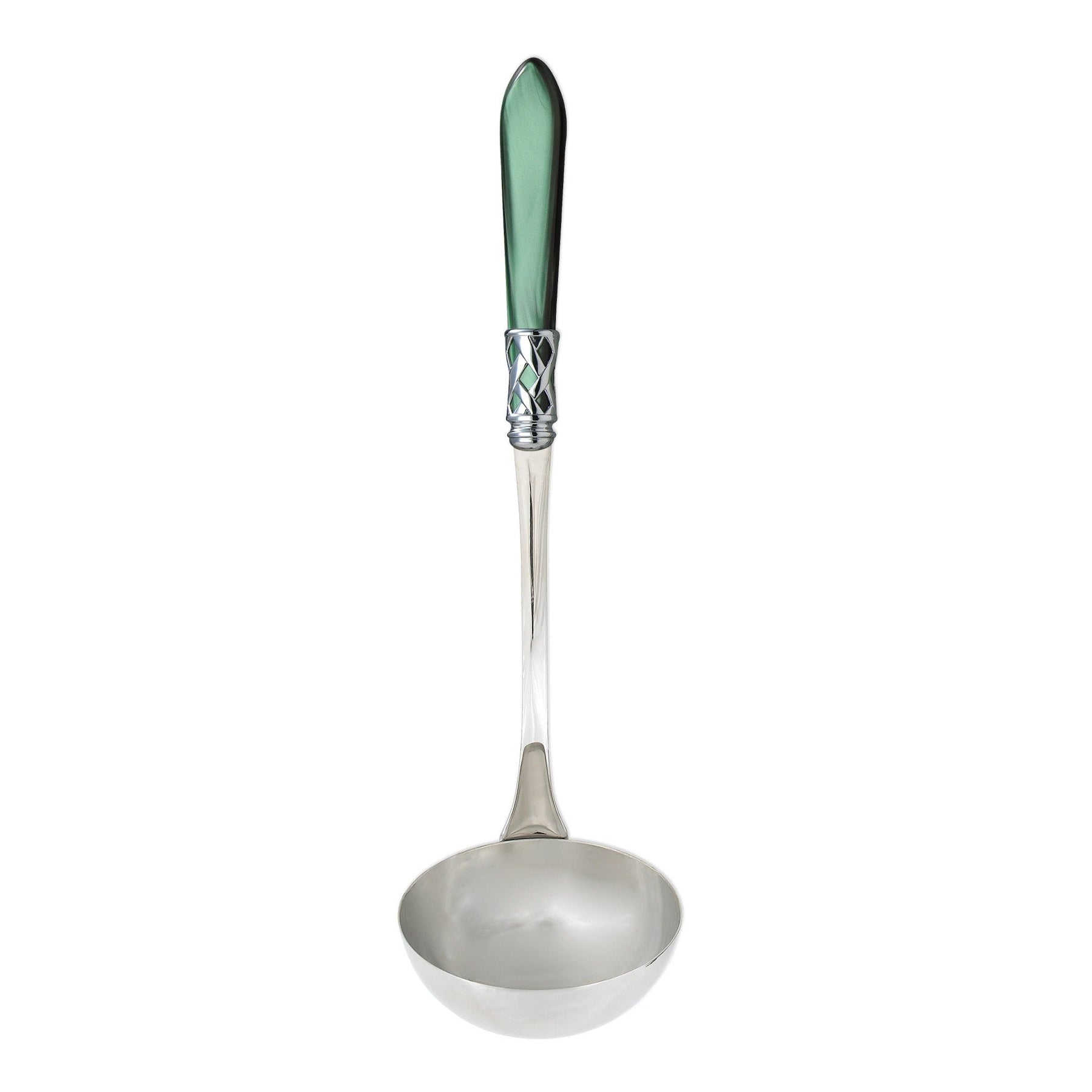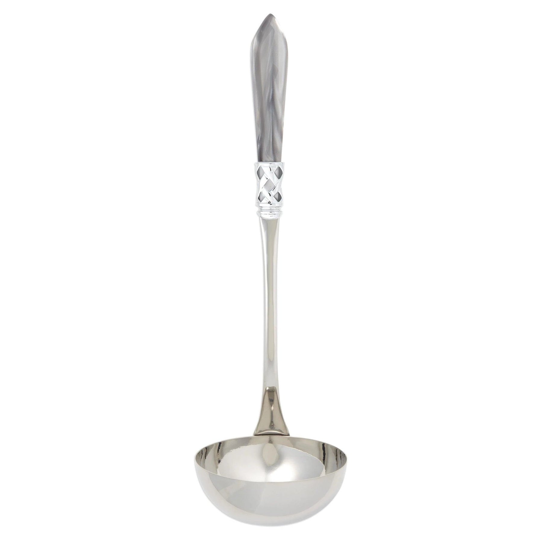 The Aladdin Brilliant Soup Ladle features elegant pearlized handles with the strength of high-grade acrylic and 18/10 stainless steel. This piece is also available in our antique finish.