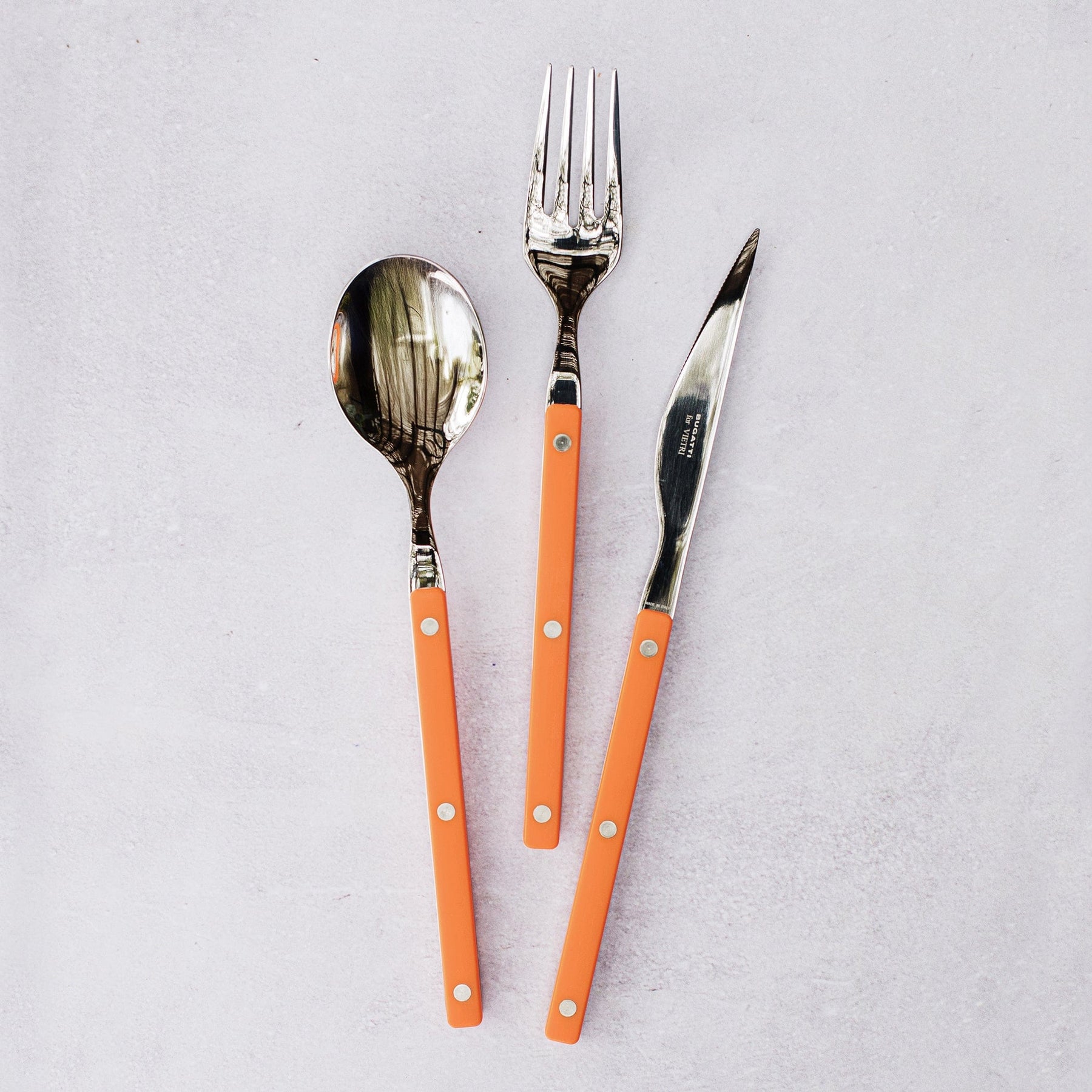 The Pastello Orange Place Spoon brings a bold pop of color to your table with its vibrant orange handle. Crafted from durable 18/10 stainless steel, it combines modern, playful style with lasting functionality and is designed for mixing and matching with other colorful pieces in the collection.