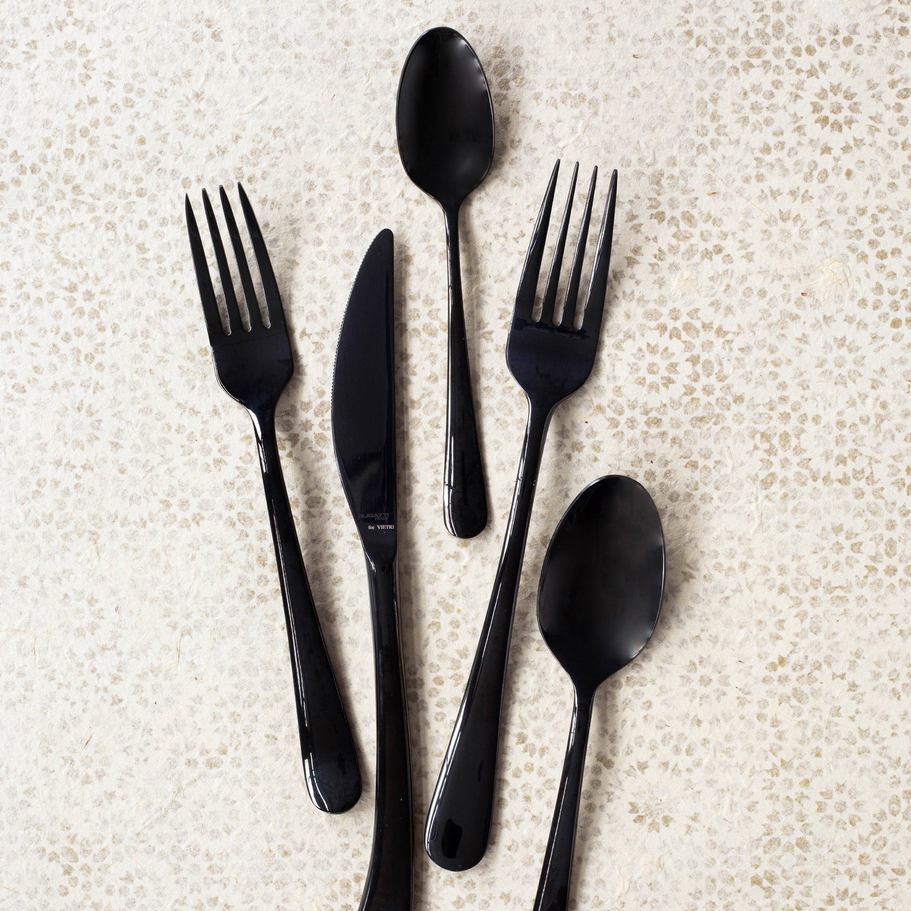 Soft, elegant lines grace each piece of the Settimocielo Five-Piece Plate Setting. Translated "seventh heaven," an emphasis on balance and comfort is prevalent with this design. The knife is hollow-handled with a forged blade for cutting precision.