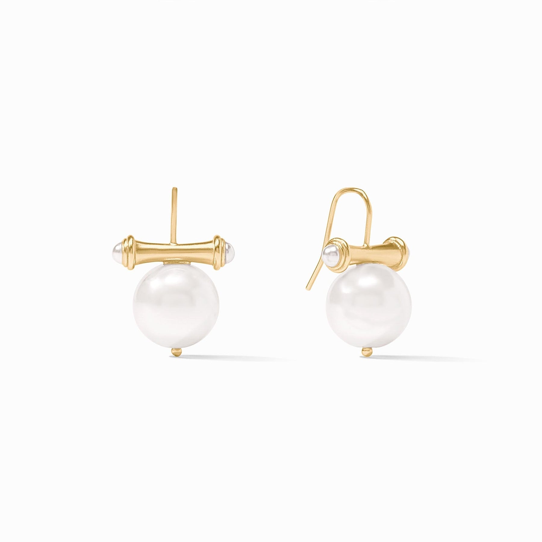 Exquisitely harmonizing land and sea, these earrings feature pearl-capped lengths of golden bamboo that appear to delicately balance atop luminous round pearls.