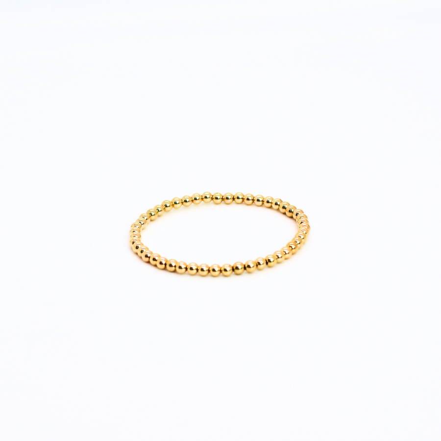 Our signature, reliable, go-to bracelet made with 4mm, 14kt gold-filled beads. Made for everyday living, which means you can sleep, shower and sweat in it. Hand beaded in the USA on high performance elastic for a slight stretch to easily roll on and off your wrist.