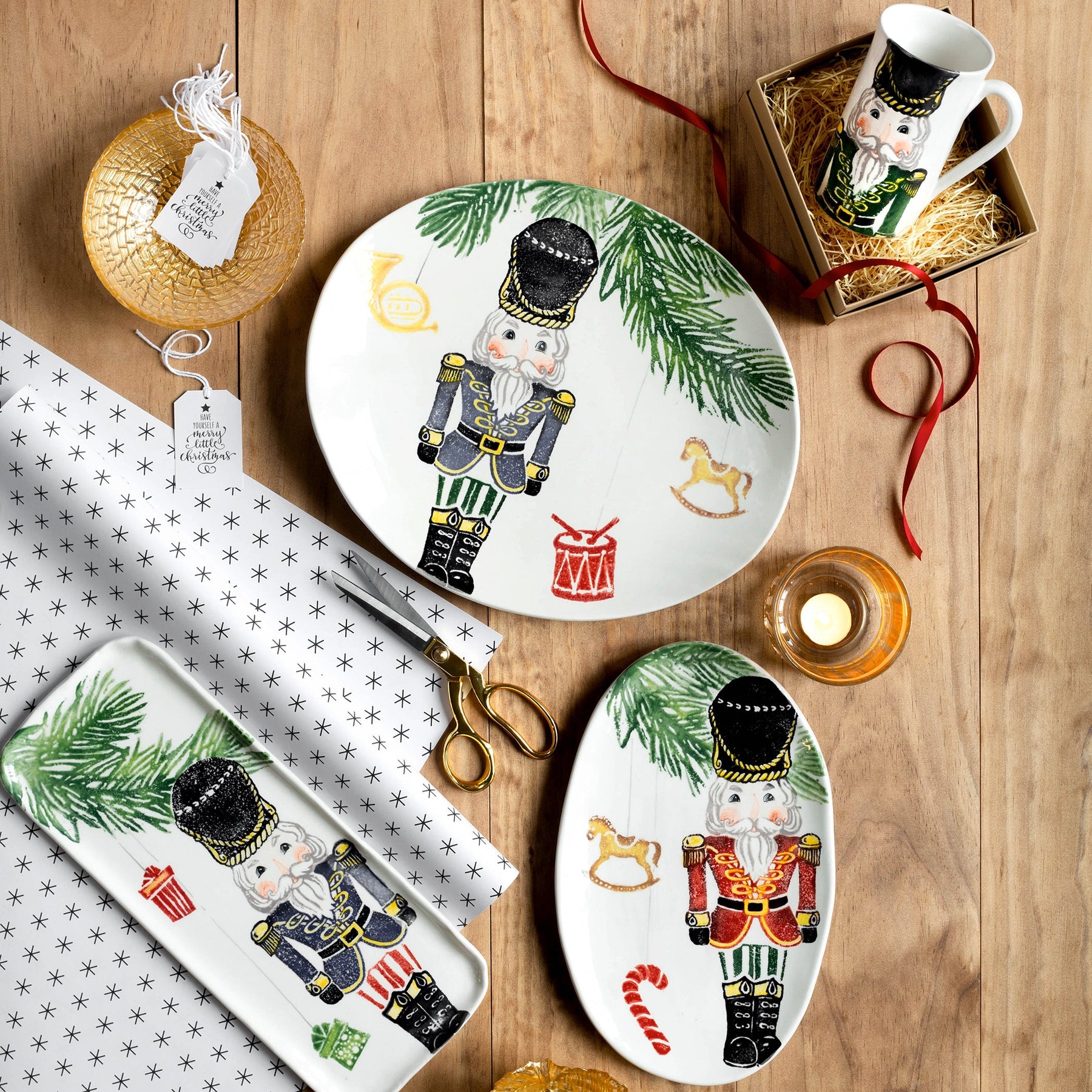 Maestro artisan, Gianluca Fabbro, recreates a Christmas classic with bright colors and a cheerful holiday design on the Nutcrackers Narrow Rectangular Platter, inspiring new family traditions with a collectible to be passed down from generation to generation.