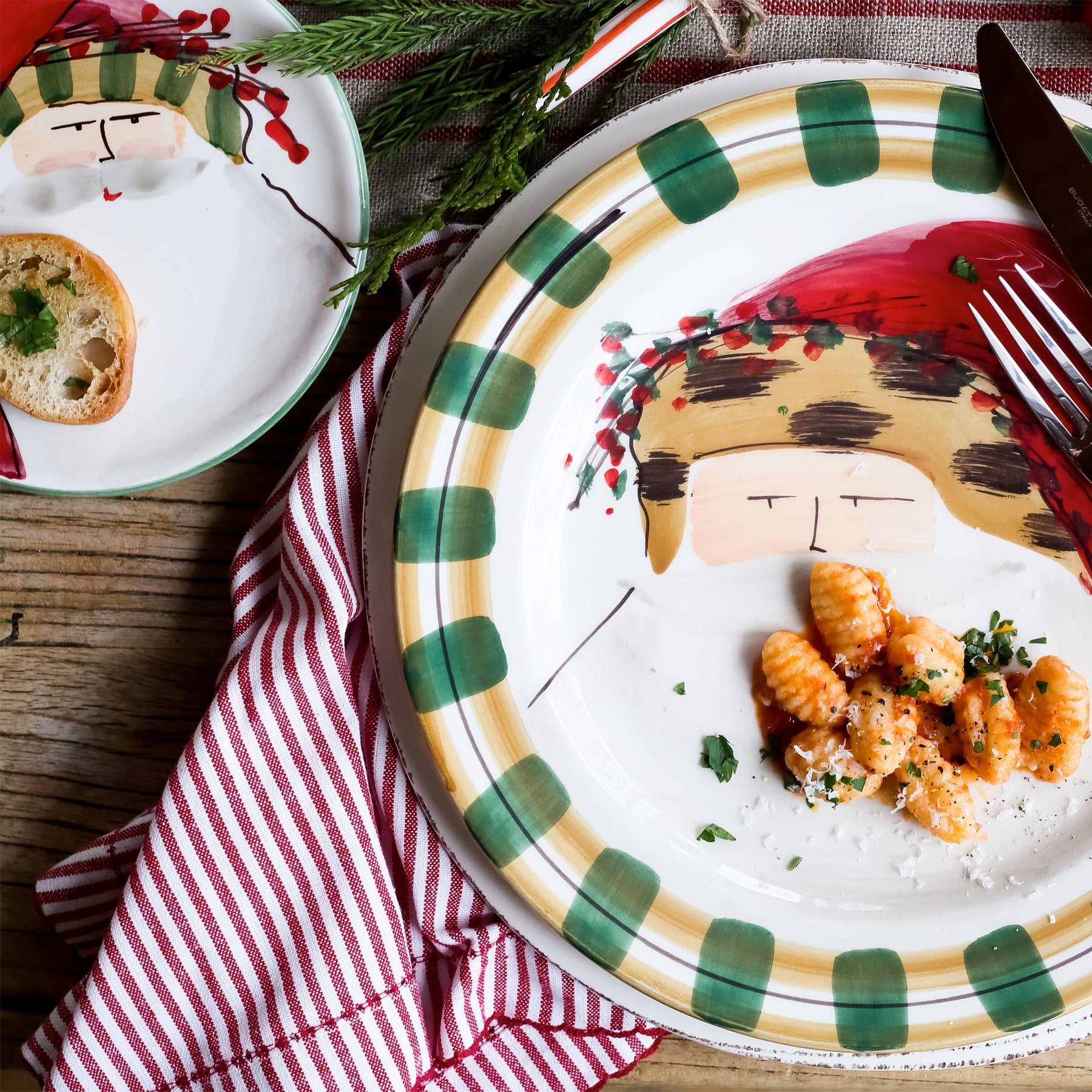 Set your table in holiday style this season with the Old St. Nick Round Salad Plate, featuring Babbo Natale wearing an Animal Hat.