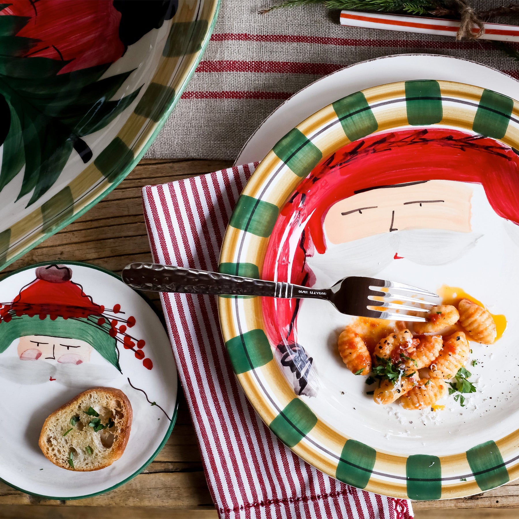 Set your table in holiday style this season with the Old St. Nick Round Salad Plate, featuring Babbo Natale wearing a Red Hat.