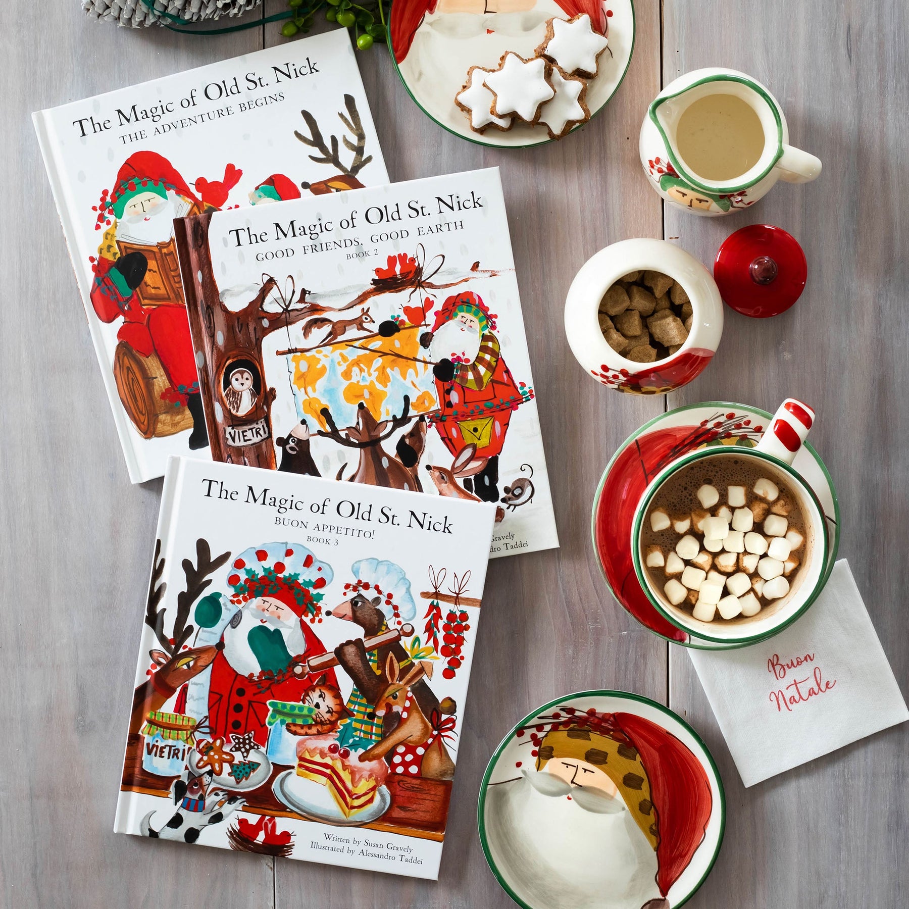The charm of this second book in the Old St. Nick series lies in the passion that both Susan Gravely and Alessandro Taddei feel for protecting and preserving nature for generations to come, and to honor the spirit of joy, magic, and generosity personified in Babbo Natale. Gravely’s prose and Taddei’s charming illustrations were inspired by the creation of VIETRI’s Old St. Nick dinnerware collection, a beloved classic that continues to be enjoyed at family gatherings worldwide.