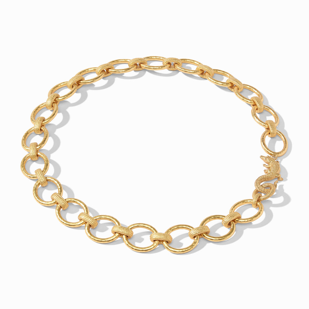 Lightly hammered oval links with textured connecting links, finished with an alligator hook.