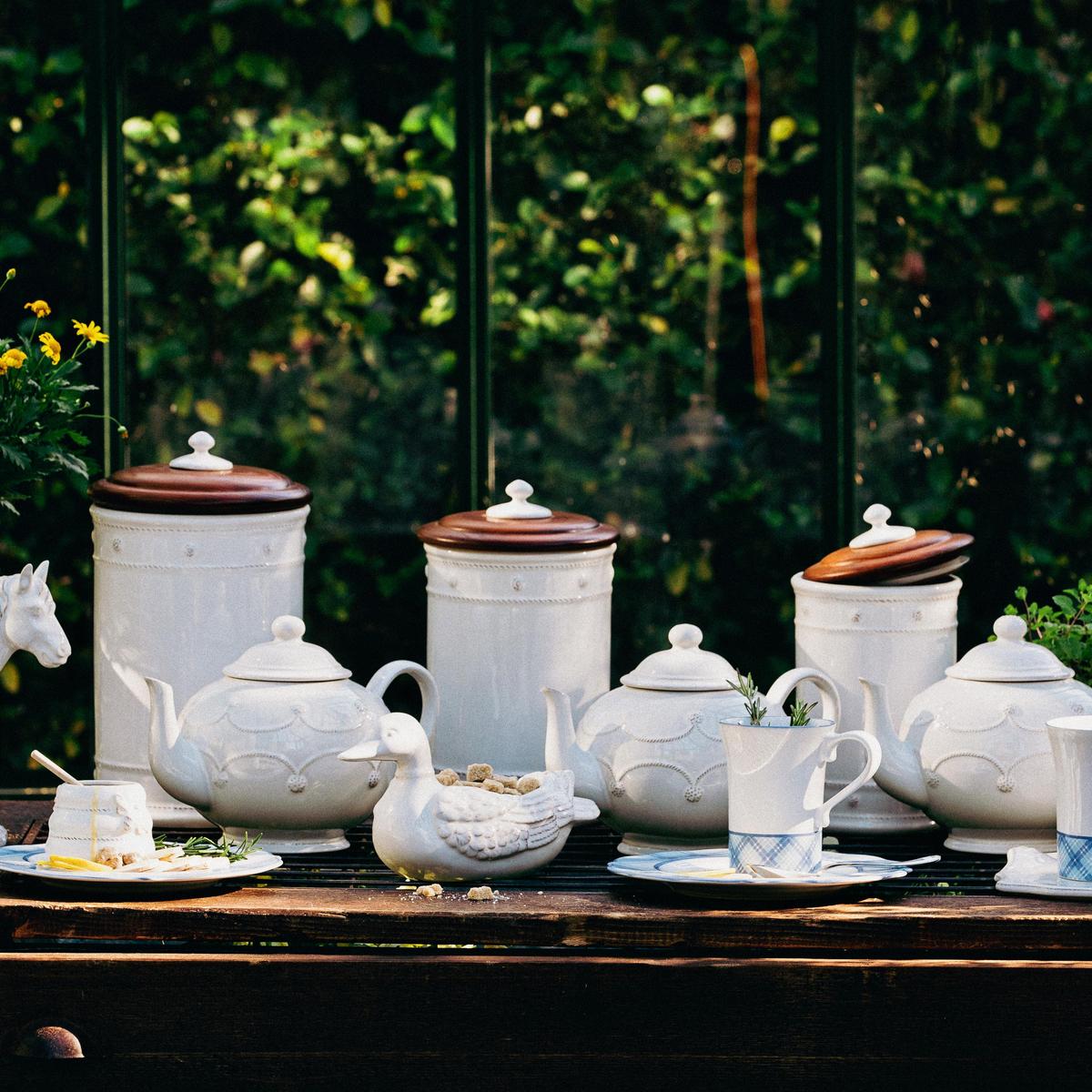 From our Berry & Thread Collection- Adorned in our rich basket weave motif and capped with an Ash Wood lid that keeps necessary supplies at your fingertips, yet under wraps. Great for your kitchen, bathroom, and office.