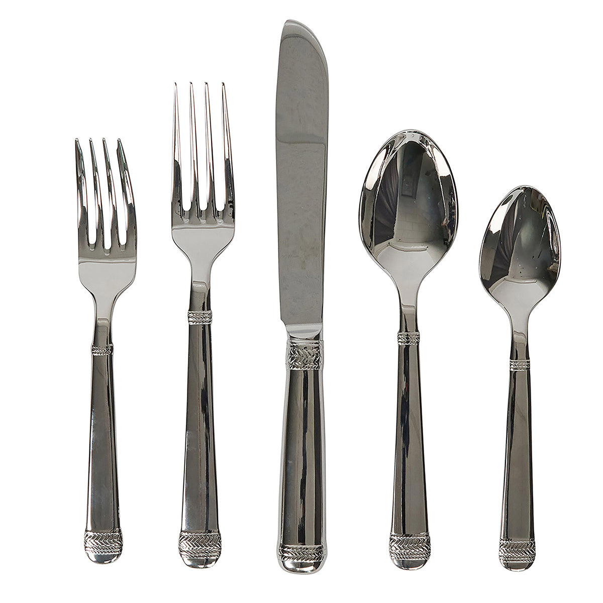 This radiant and refined collection is artfully embellished by meticulously detailed braiding, which was inspired by the woven motifs of equestrian and nautical traditions. Crafted of 18/10 stainless steel, it serves up equal portions of practicality and polish for everything from fuss-free suppers to formal celebrations.