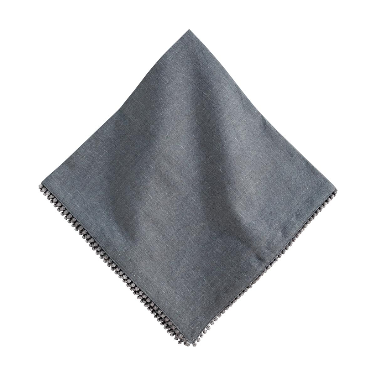 Add a lovely layer of understated adornment to the table with these beautiful linen napkins of woven cotton that are trimmed with a border of tiny, embroidered knotting for subtle embellishment. Offered in fun and fabulous colors of flint, saffron, persimmon and watercress.