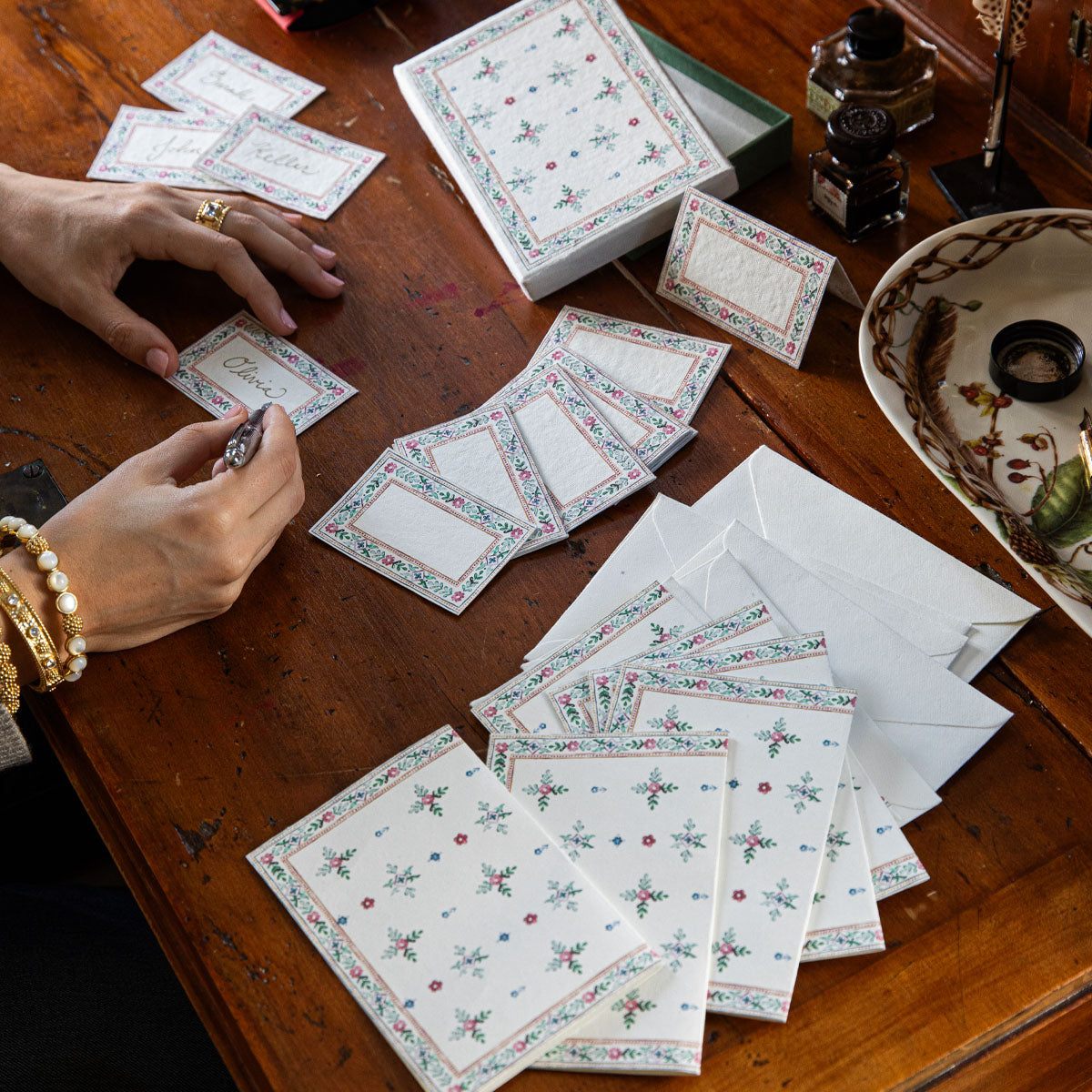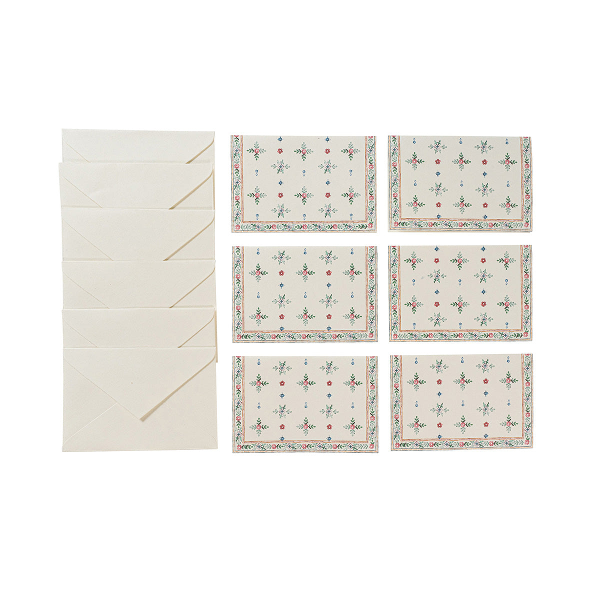 Send thanks and express gratitude the old-fashioned way—with a beautiful card and a handwritten note! This set of 6 note cards features the Alpine folkloric florals of our Heidi pattern in a joyful palette of traditional colors.