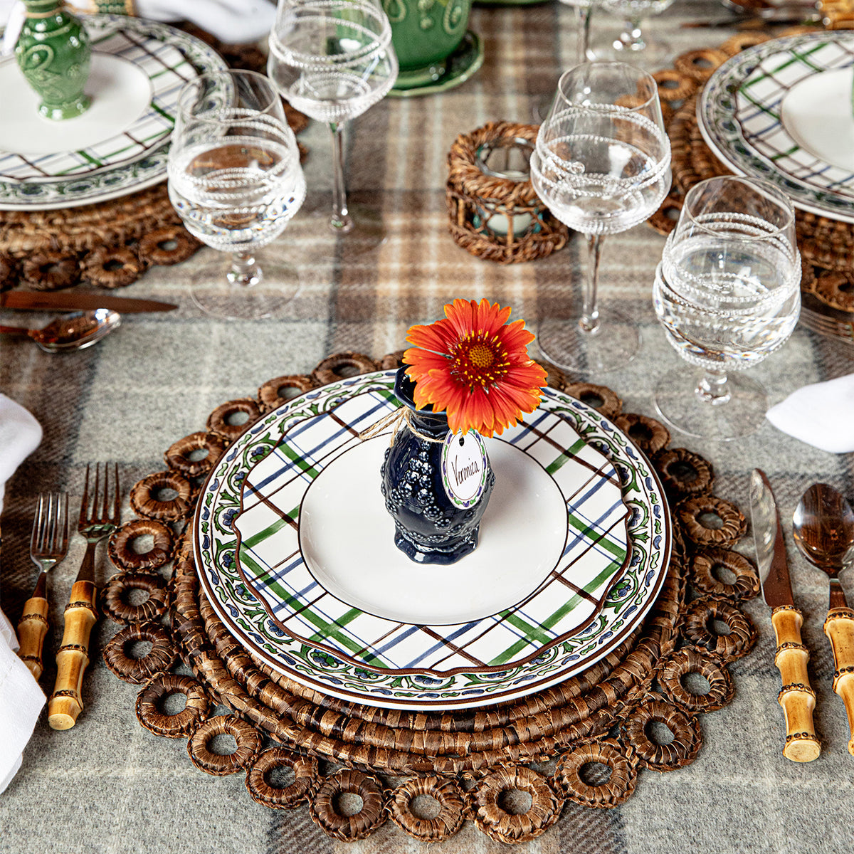 Equal parts rustic and refined, this hand-woven placemat delivers a naturally beautiful and richly textural element to table settings of all sorts - from mountain chalet to a barbecue under bistro lights.