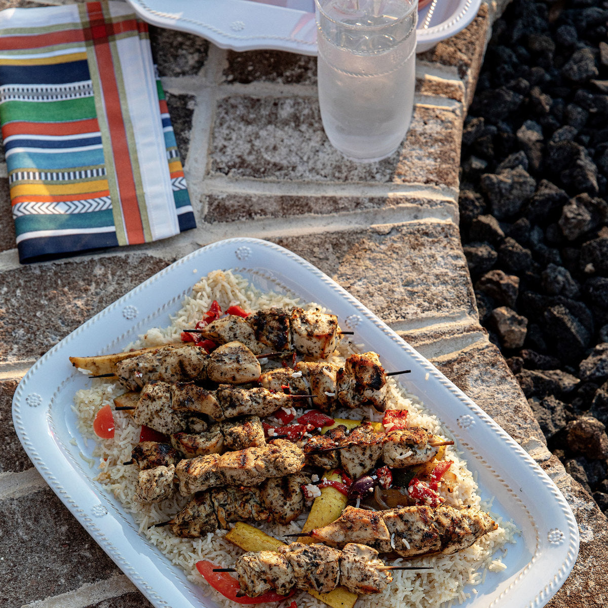 From our Al Fresco Collection- Trimmed with our simple thread and adorned with a sprinkling of berries, this durable serving tray will transport your dinner directly from the grill to your table with ease.