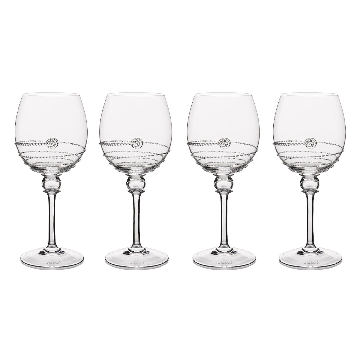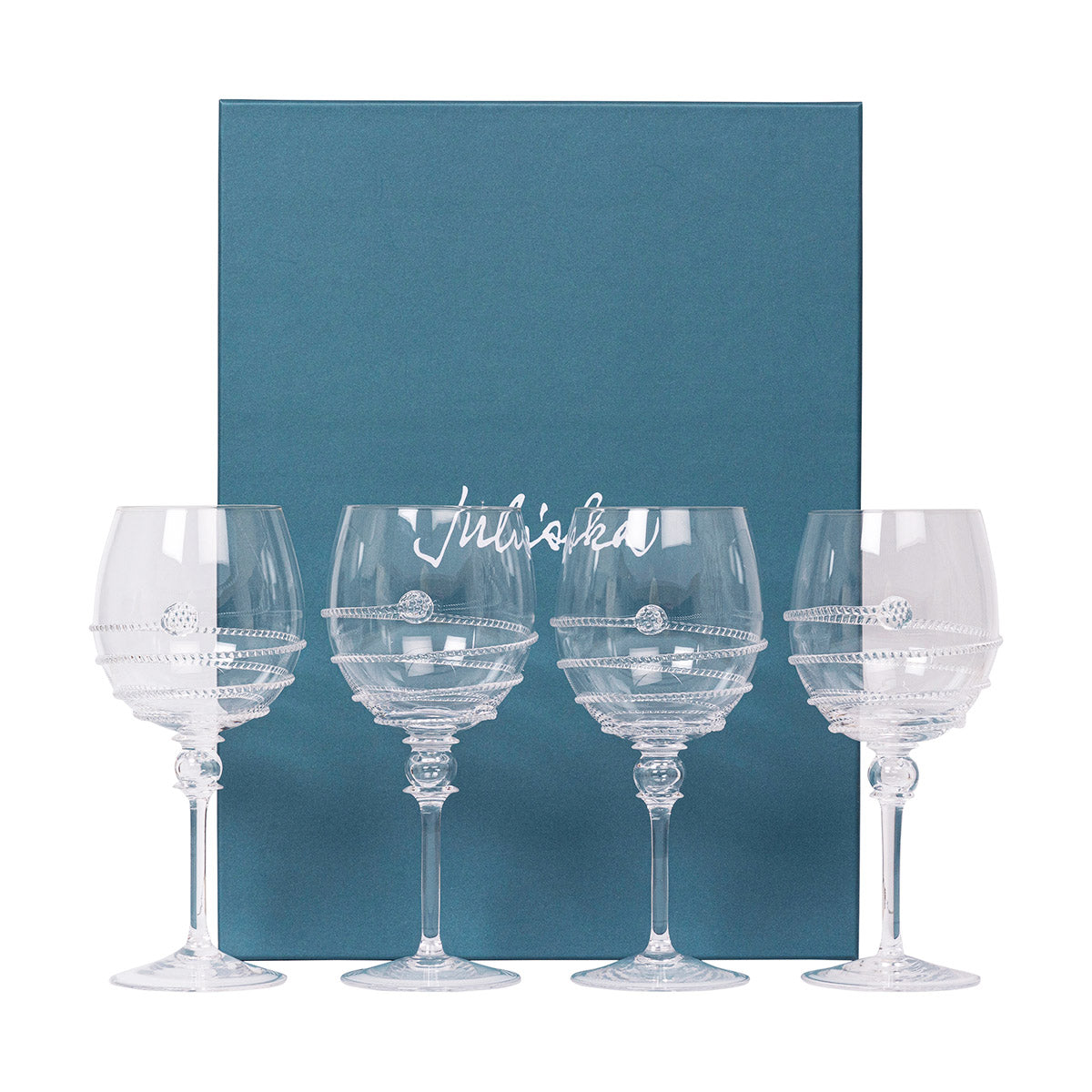 Four fabulous Amalia glasses, festooned with our iconic uplifting swirl and buttoned with a solitary berry upon a statuesque stem, to pair perfectly with all of your whites, rosés, and spritzes. Packaged in our signature Juliska gift box for an elegant presentation.