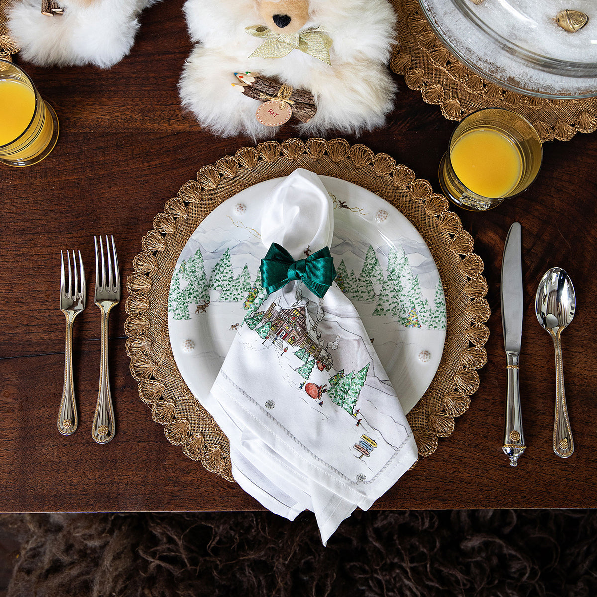 Our new tuxedo-inspired napkin ring was designed in an elegant evergreen hue to dress up any Holiday place setting. Handsewn with rings wrapped in soft velvet ribbon, these handsome green bows will festoon any table with festive flair.