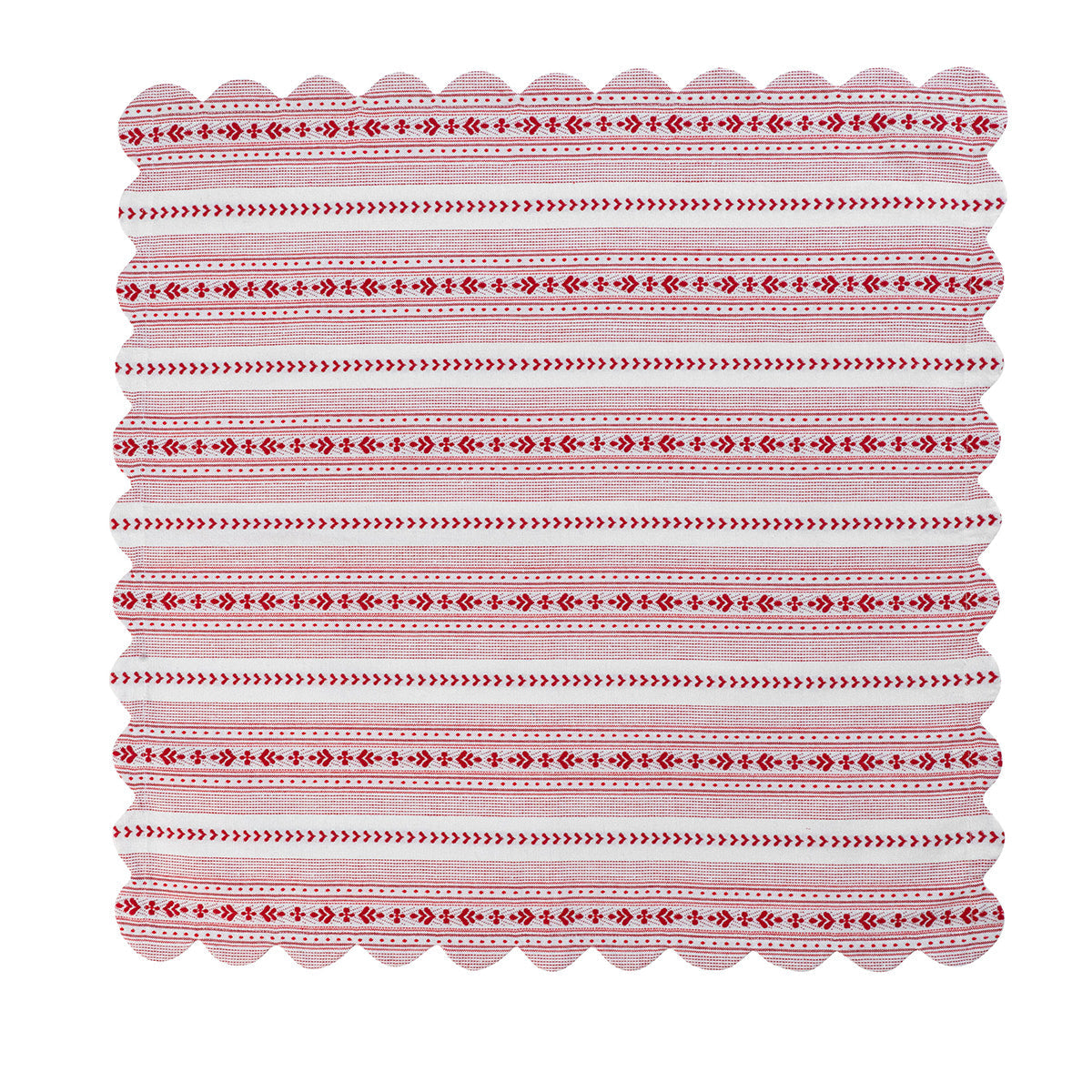 Our favorite motif from the Villa Sevilla pattern is transformed into a jacquard stripe in red and cream, tailored with a sweetly scalloped edge. This cotton napkin brings an irresistibly cheerful, charming and traditional feel to the table, whether it’s Sunday supper or a festive holiday brunch. Accessorize with a napkin ring for a fully festive look!