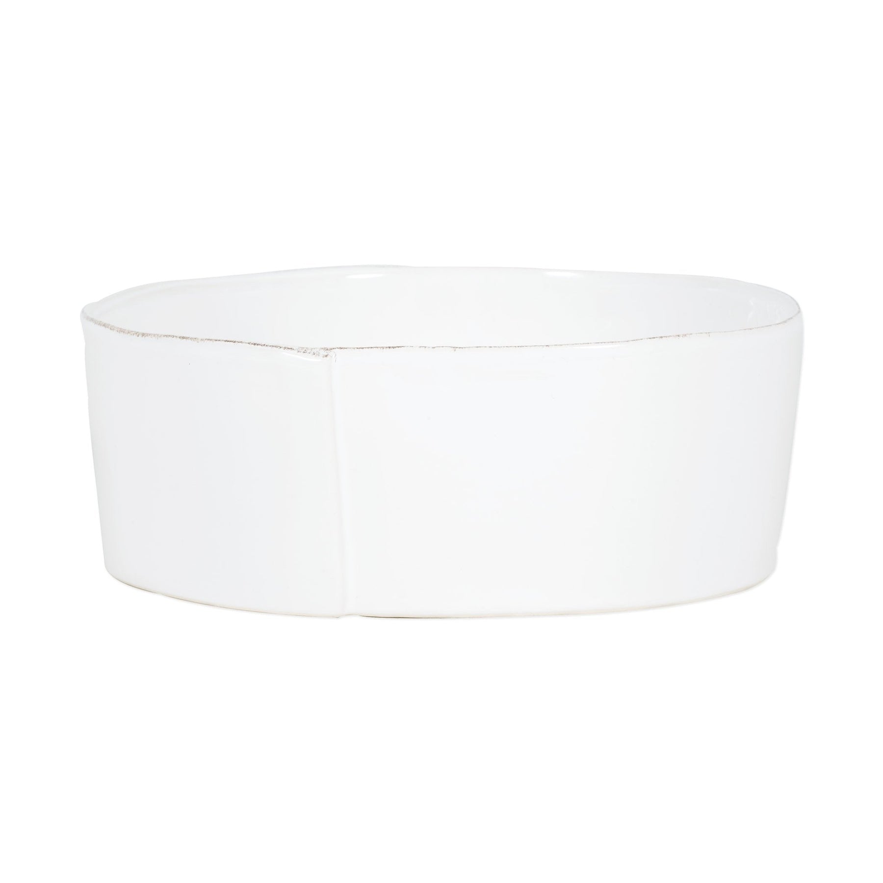 Beloved for its sophisticated simplicity, versatility, and durability, Lastra is our bestselling collection. The understated elegance, clean lines, and unique shape of the Lastra Large Serving Bowl make it a timeless serving piece for your table. Lastra’s design was inspired by the circular wooden slabs used for centuries to create the outer mold in cheesemaking throughout Italy. When fashioned together with twine, the hoop was left with a slight overlap to help maintain the shape of the cheese mold. Maestro molder Stefano Roselli incorporates the overlapping detail into the entire design, from its foot to its rim. A dark dusting on the edges of each piece suggests the ash that was used to preserve these cheeses and highlights each unique silhouette.