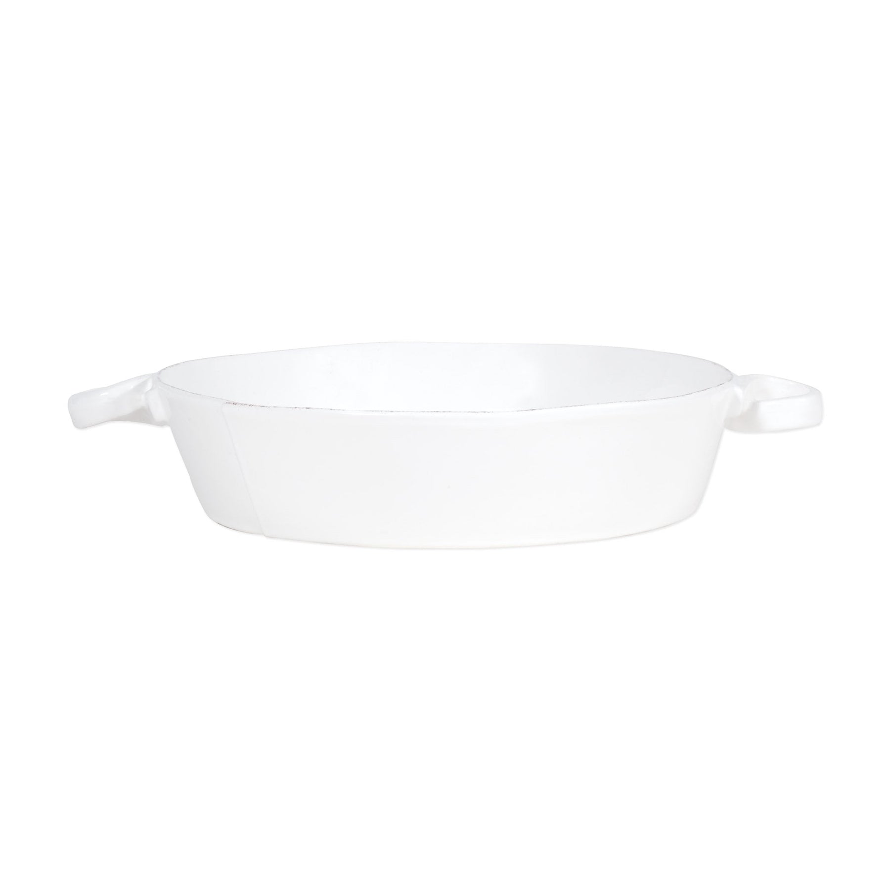 Beloved for its sophisticated simplicity, versatility, and durability, Lastra is our bestselling collection. The Lastra White Four-Piece Bakeware Set includes the Lastra White Square Baker, the Lastra White Handled Oval Baker, the Lastra White Rectangular Baker, and the Lastra White Handled Round Baker. It is a beautiful set for anyone who likes to bake. Lastra’s design was inspired by the circular wooden slabs used for centuries to create the outer mold in cheesemaking throughout Italy. When fashioned together with twine, the hoop was left with a slight overlap to help maintain the shape of the cheese mold. Maestro molder Stefano Roselli incorporates the overlapping detail into the entire design, from its foot to its rim. A dark dusting on the edges of each piece suggests the ash that was used to preserve these cheeses and highlights each unique silhouette.