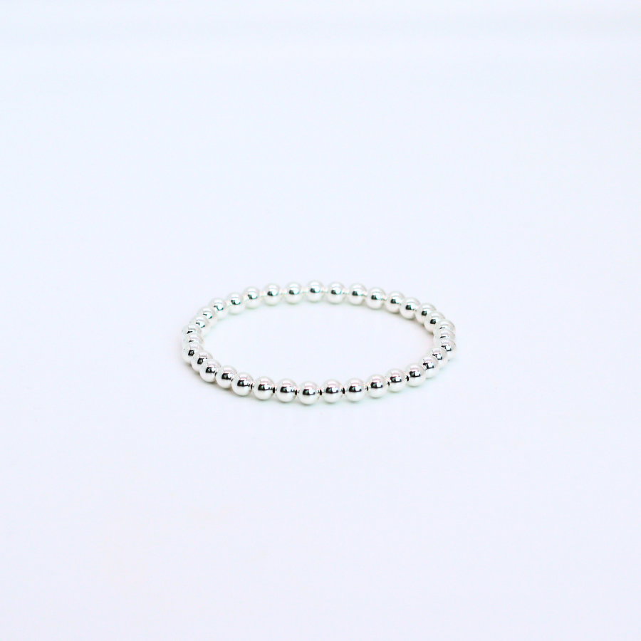 Our signature, reliable, go-to bracelet made with 2mm, sterling silver beads. Made for everyday living, which means you can sleep, shower and sweat in it. Hand beaded in the USA on high performance elastic for a slight stretch to easily roll on and off your wrist.