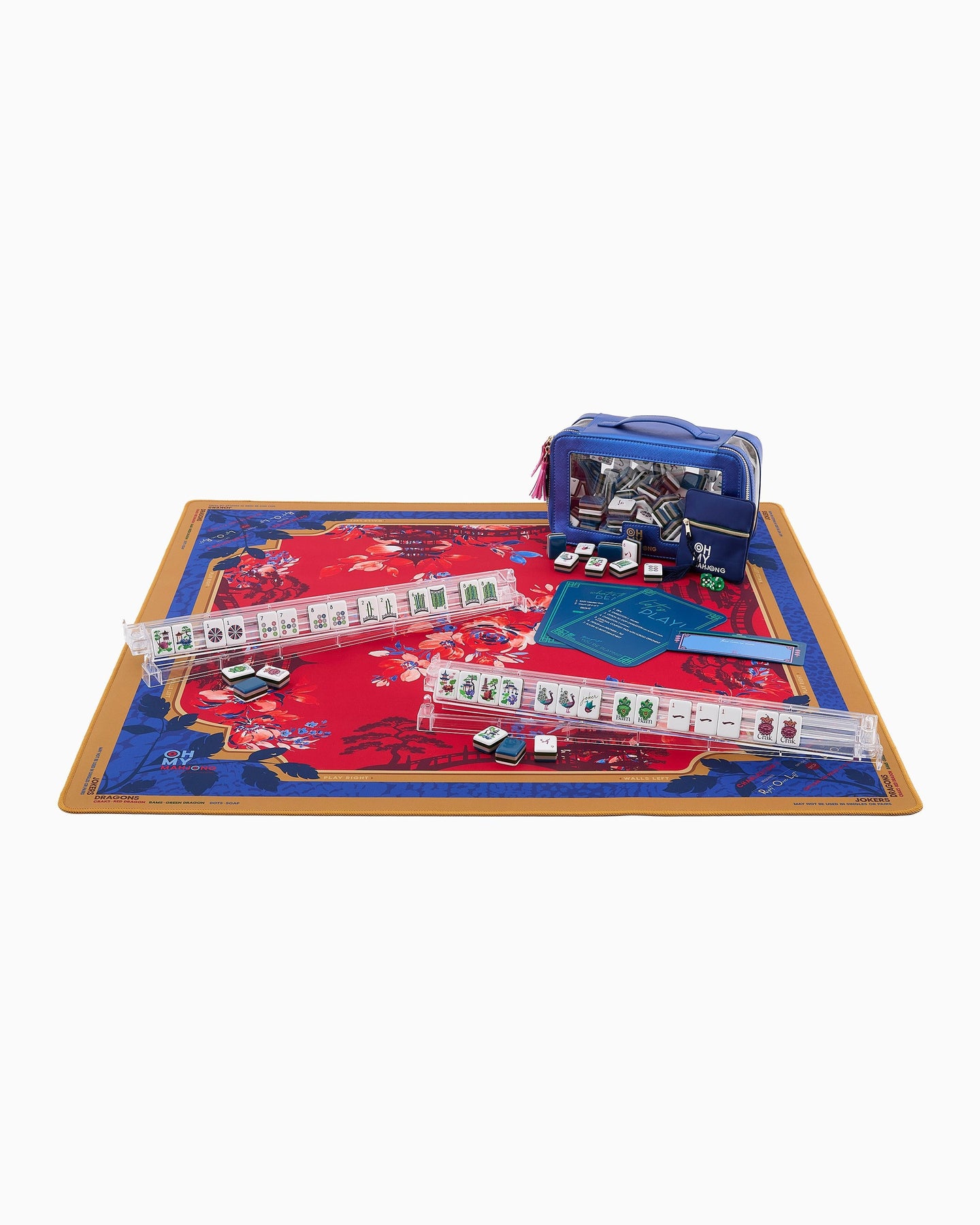 Bold, dramatic, and undeniably elegant, the Scarlett Mahjong Mat brings rich color and striking detail to your table. Featuring a vibrant crimson backdrop framed by deep navy and golden accents, this design is inspired by timeless chinoiserie motifs with a modern, elevated twist.