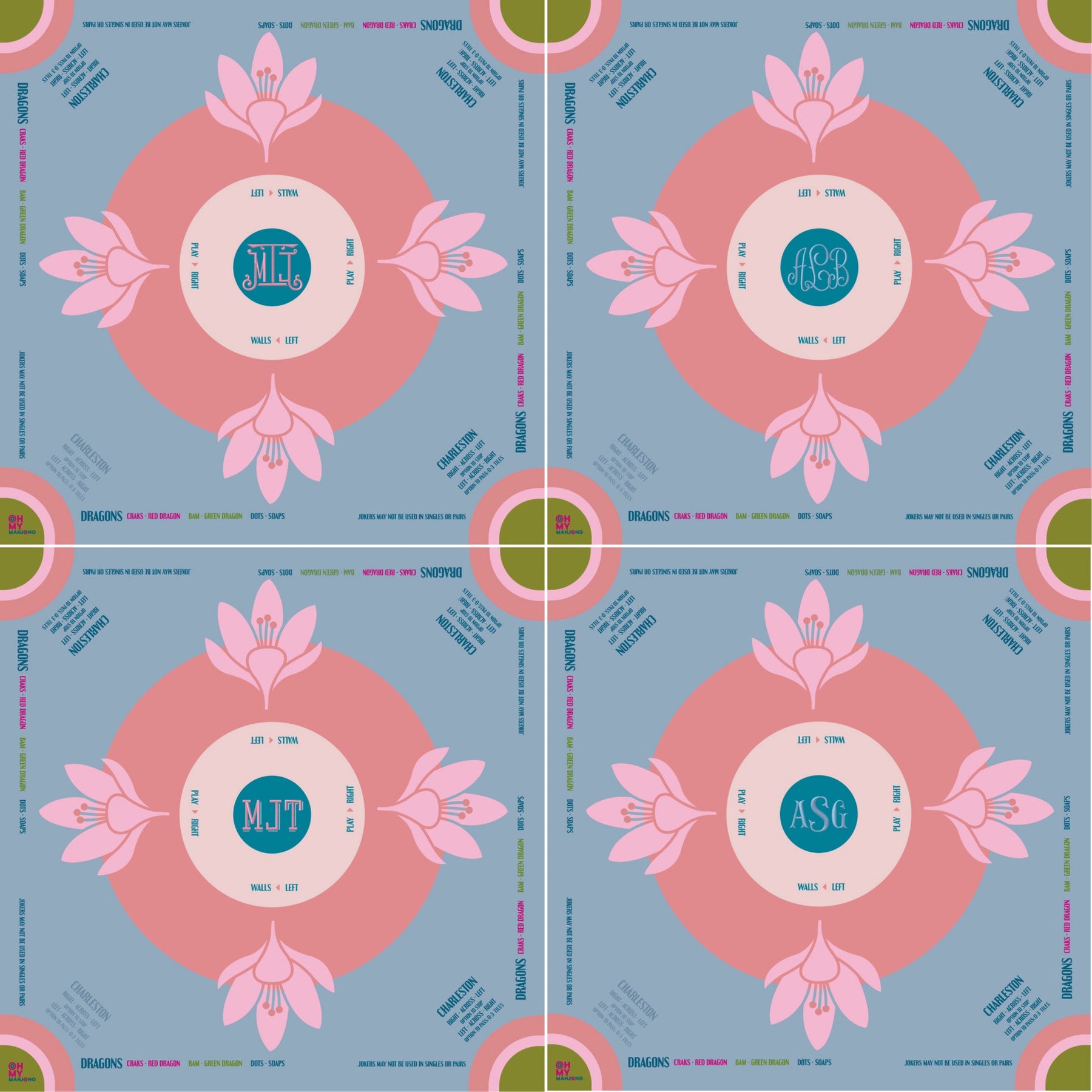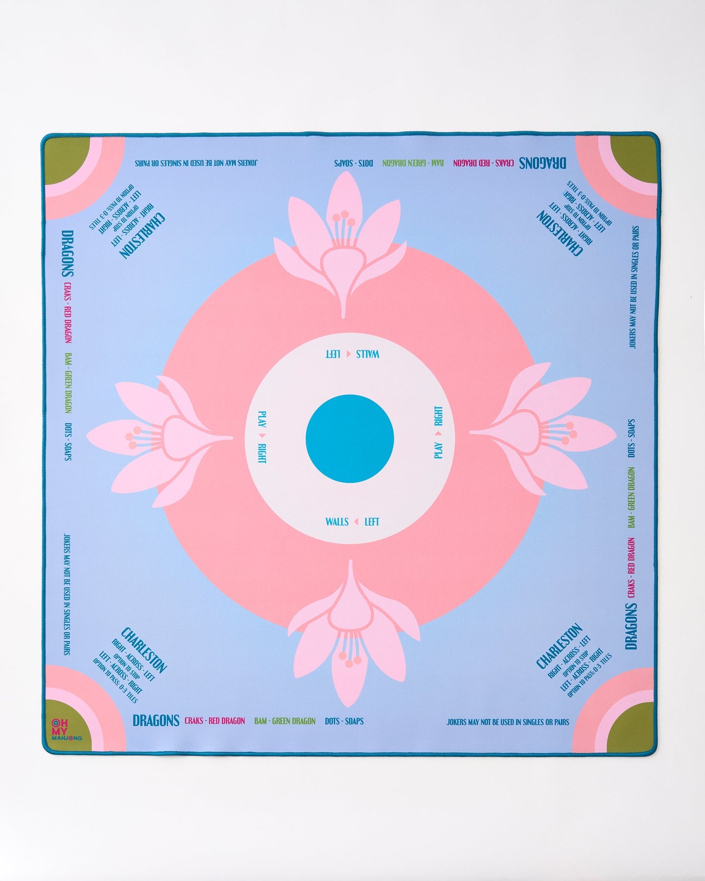 Behold the chic and feminine La Fete Mahjong Mat, a springtime-inspired mat crafted to infuse your gameplay with romance and sophistication. The allure of the La Fete Mahjong Mat goes beyond its captivating pink, blue, and olive aesthetics. With a non-slip surface that ensures your gameplay remains steady, you can indulge in your passion for the game with the confidence of a seasoned pro. And as if that weren't enough, this effortlessly fabulous mat also comes adorned with essential rules for American Mahjong along the sides, guiding you through the game with clarity.