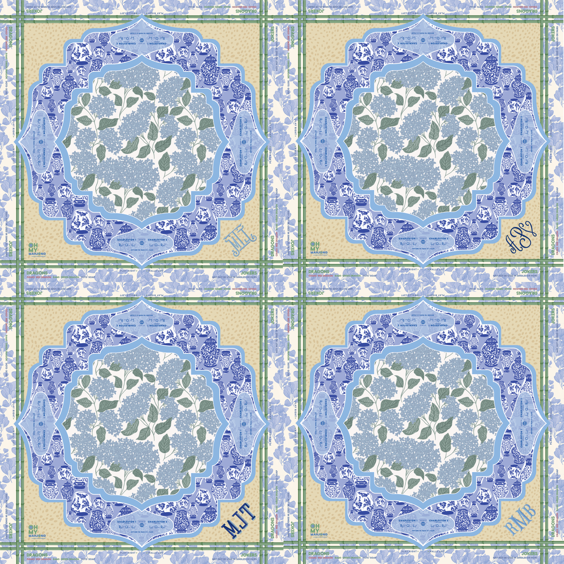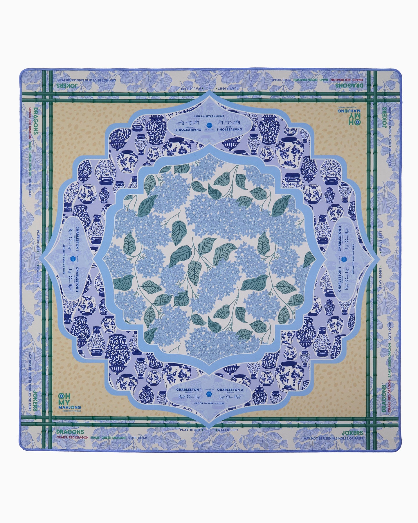 Introducing the Luna Mat — a serene yet statement-making addition to your Mahjong setup, designed for those who love timeless elegance with an artful twist. Awash in calming shades of blue and green, this mat beautifully blends hydrangea blooms, classic ginger jars, and a subtle antelope print for a look that’s equal parts coastal chic and heritage inspired. It’s sophisticated, layered, and quietly luxurious — the kind of pattern that feels right at home in your garden room, beach house, or candlelit game night setting.