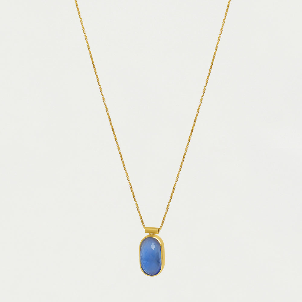 Gemstone: Celestial Blue (man-made). This rich blue synthetic gemstone is handcrafted as a doublet, a technique that lends it extra iridescence through a mother-of-pearl backing.