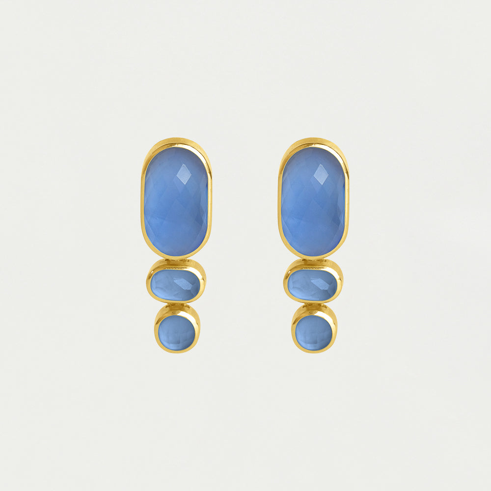 Gemstone: Celestial Blue (man-made). This rich blue synthetic gemstone is handcrafted as a doublet, a technique that lends it extra iridescence through a mother-of-pearl backing.