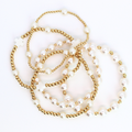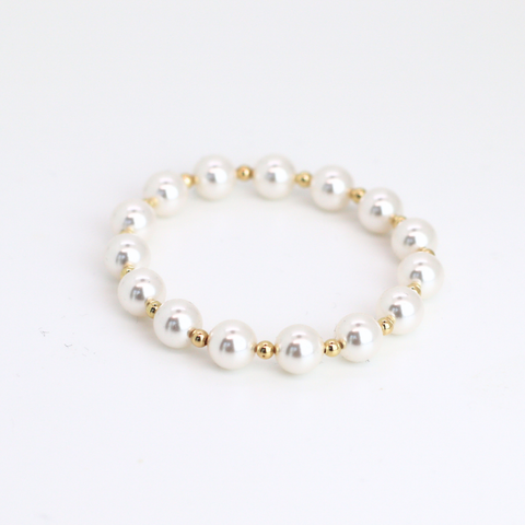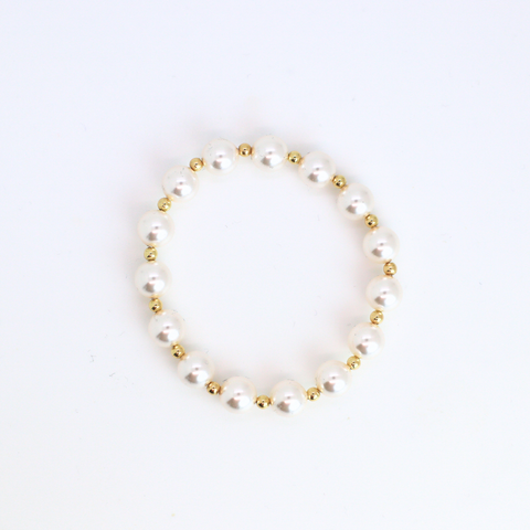 Details • 3mm 14kt gold-filled beads • 8mm Swarovski pearls • Standard fit: 6.5" • Durable stretch elastic • Made for everyday wear • Pairs perfectly in any stack, especially pearls, and white cross