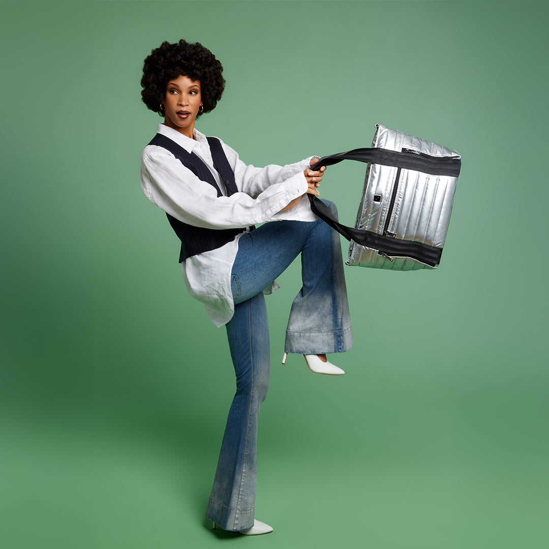 Our Jetset Wingman has a new sidekick! This perfectly proportioned junior version of our beloved Jetset Wingman has arrived and is ready for take-off. Smaller but still packing a powerful punch of pockets galore and a hidden trolley sleeve…this is the chicest go to tote around town or around the world.