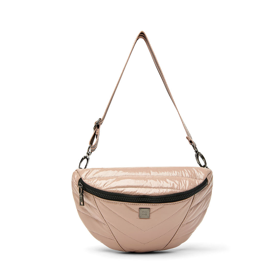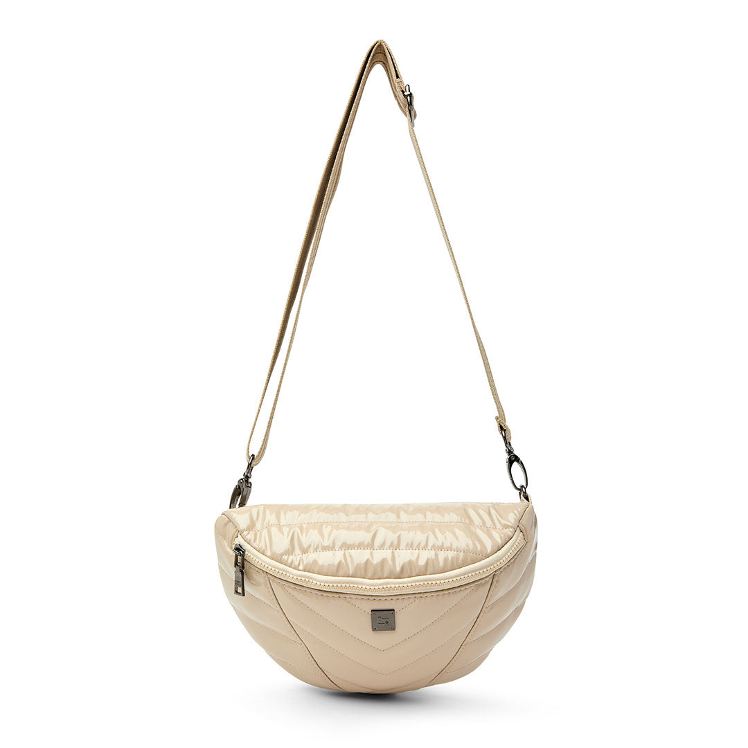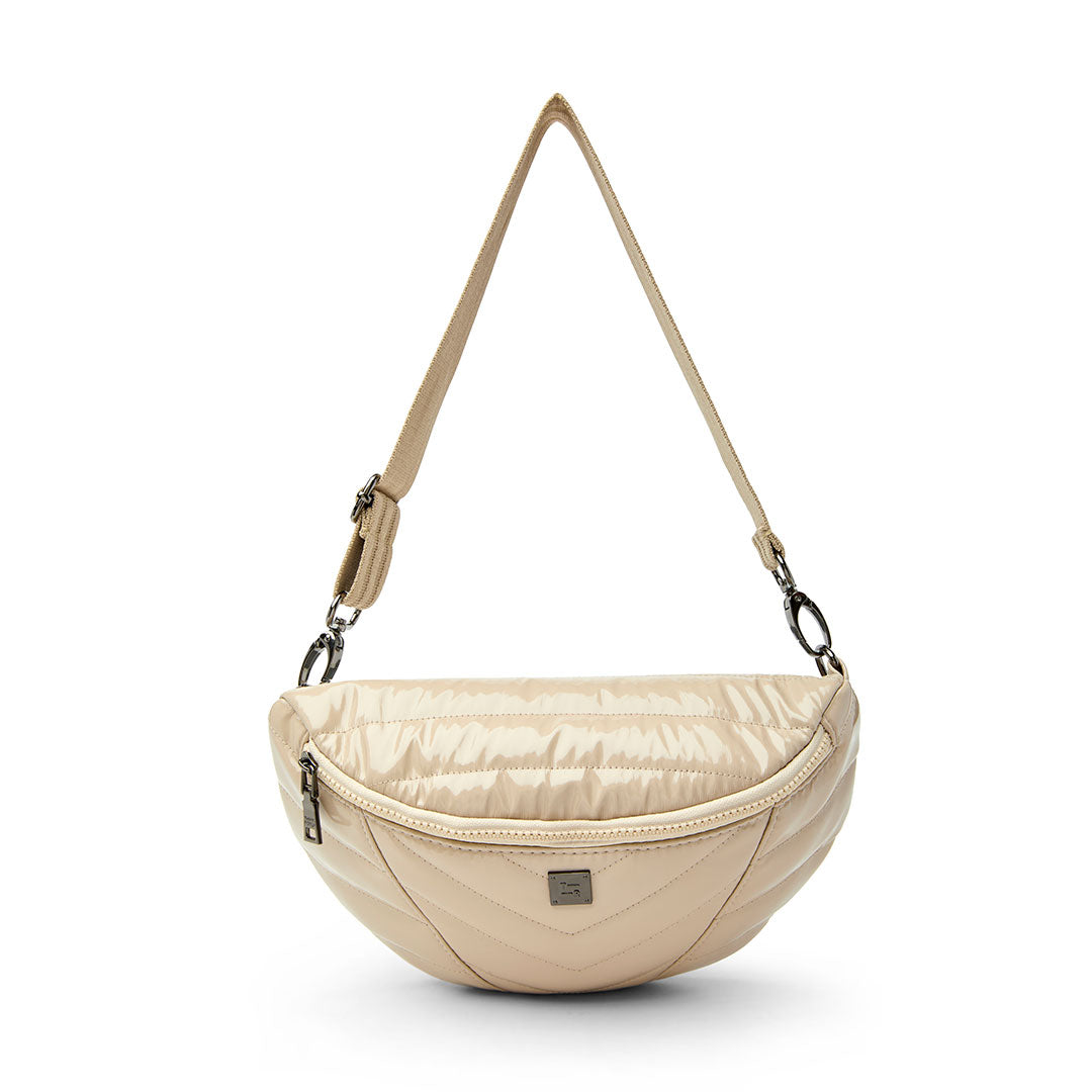 The silhouette...we are obsessed with this half moon shape, dimensional on one side and smooth on the other...and the mixed directional quilting is beyond...Little Runaway...catch her if you can!
