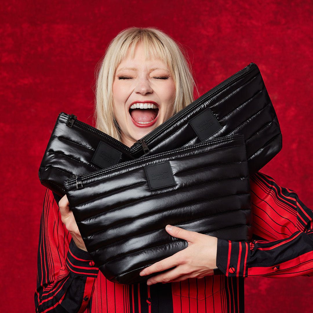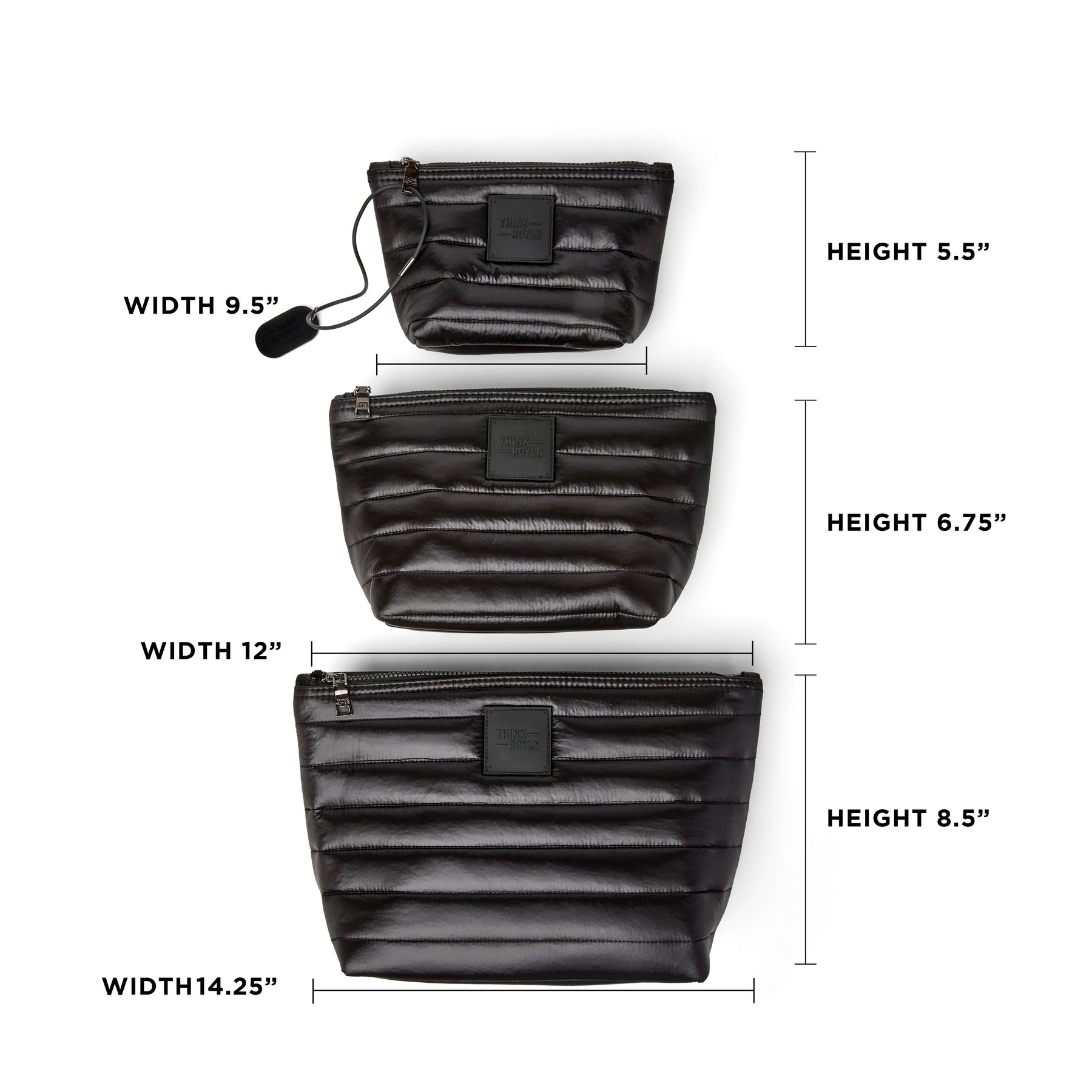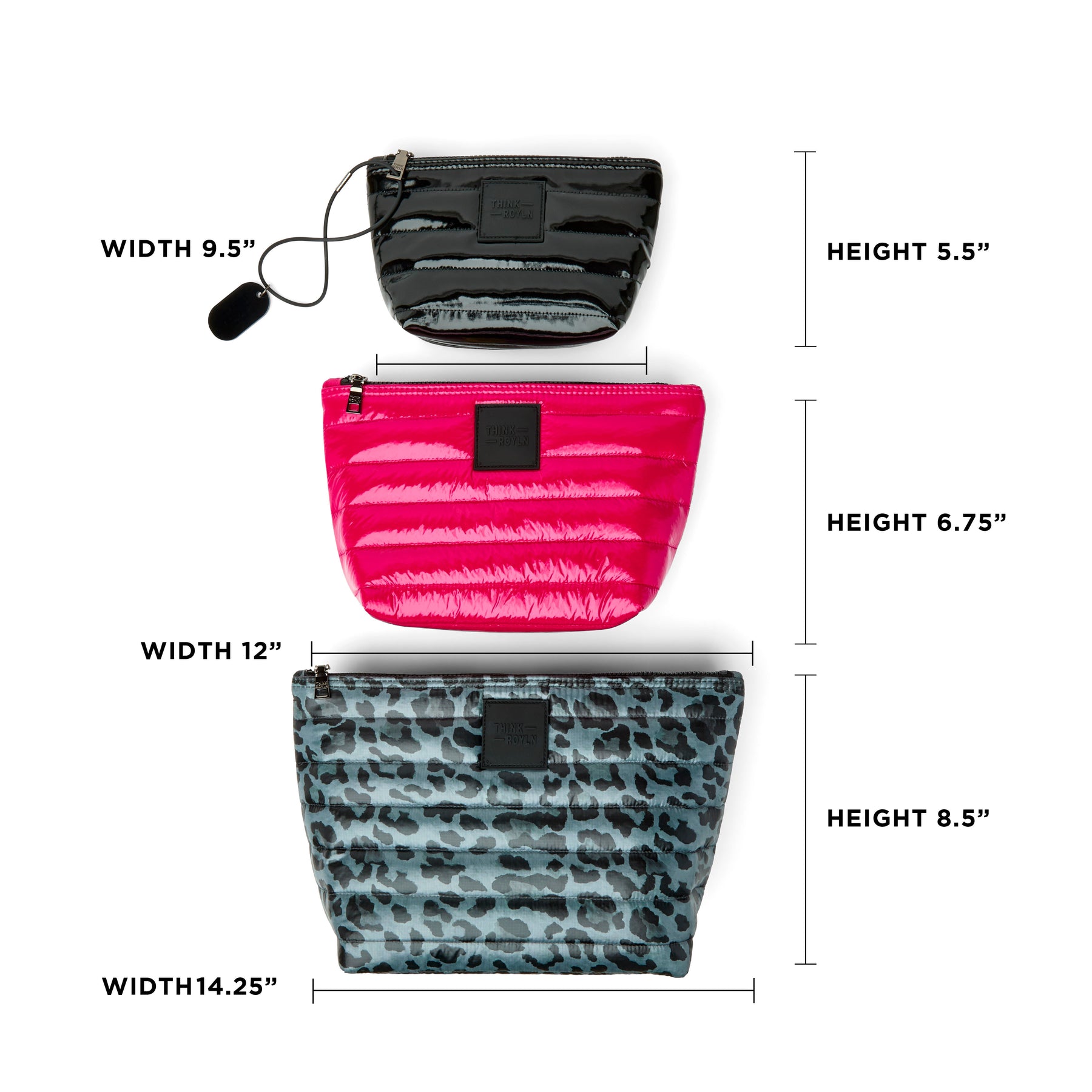 The Travel Trio Organizational Pouches are a triple threat of style, organization, and wow! These three perfectly sized bags keep you organized during everyday adventures to jet-setting around the world. Our signature quilting exterior is lined with silver foil finish providing shape and style to these gems. Perfect for essentials from beauty products to power cords and beyond….even ideal for a chic and sporty clutch on the go!