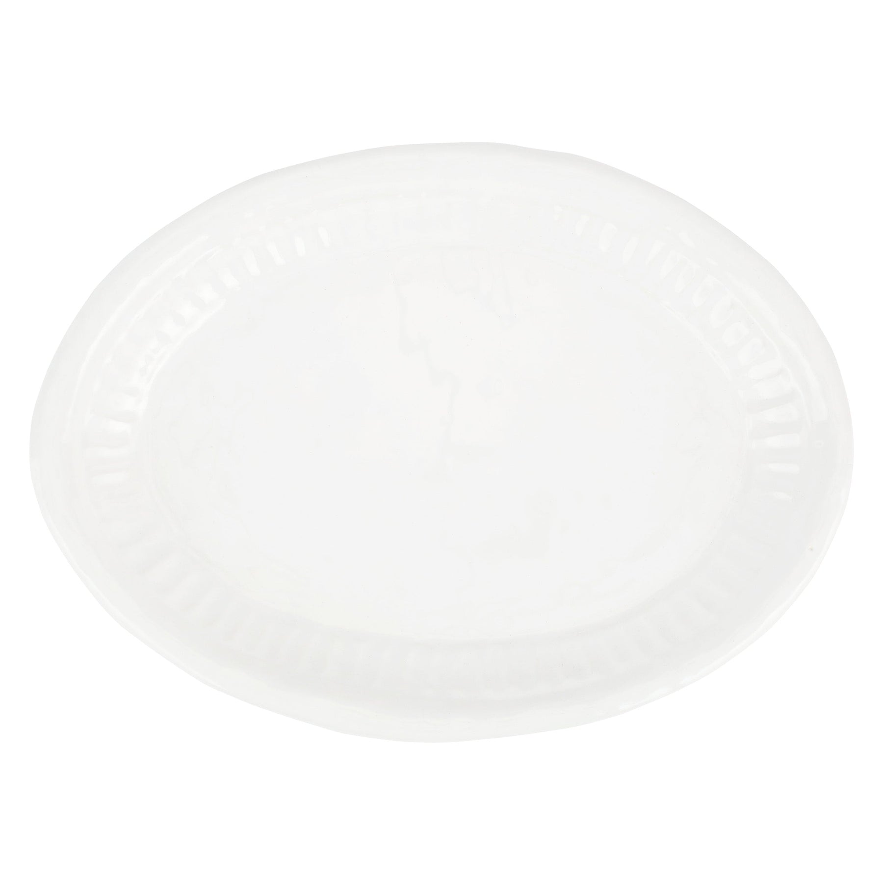 Pietra Serena, meaning serene stone, represents the simplistic beauty of the handpressed design found on the Pietra Serena Large Oval Platter.