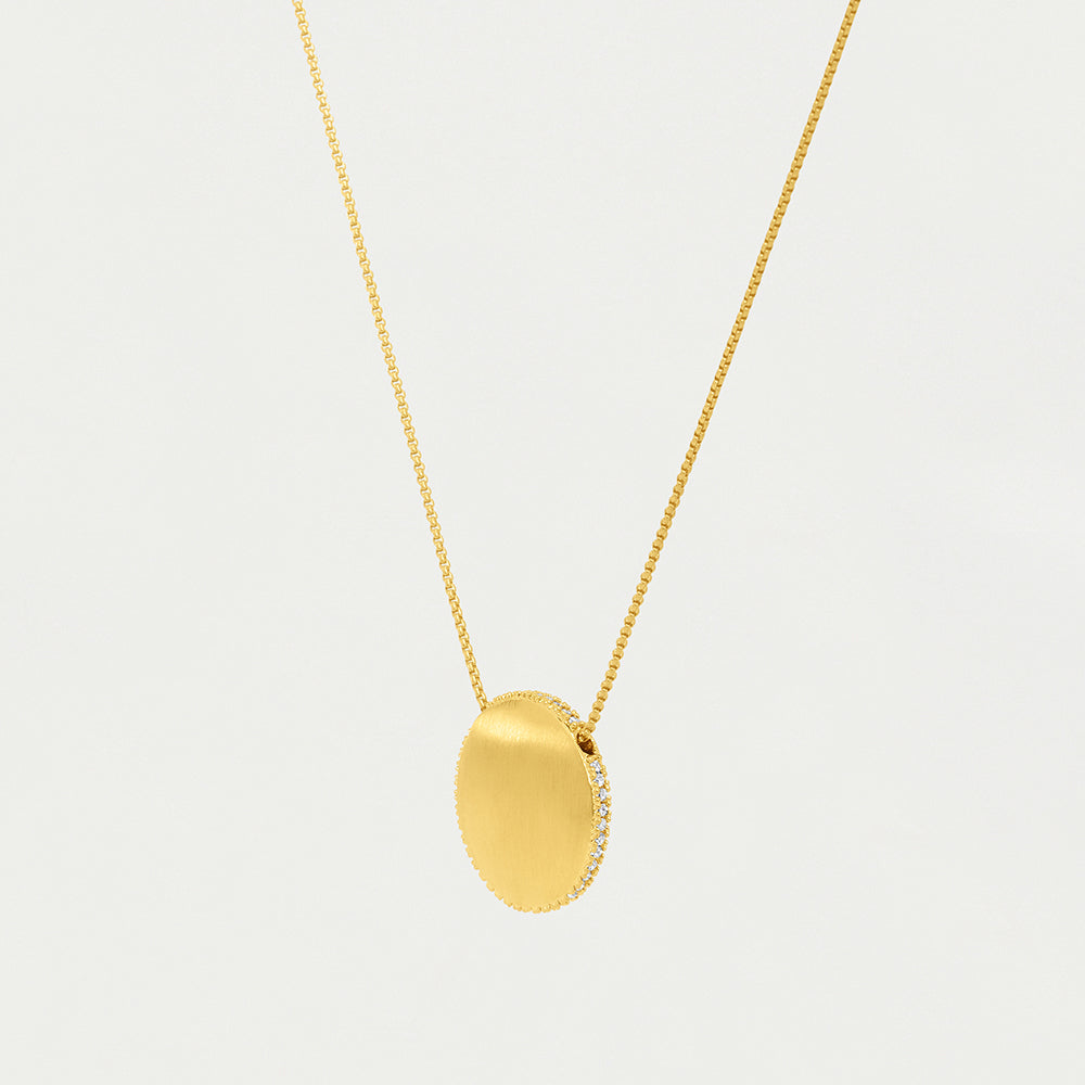 Lined with a delicate border of pavé, the brushed gold disc of the Petite Pavé Pendant features a subtle touch of sparkle that makes this adjustable necklace truly special.