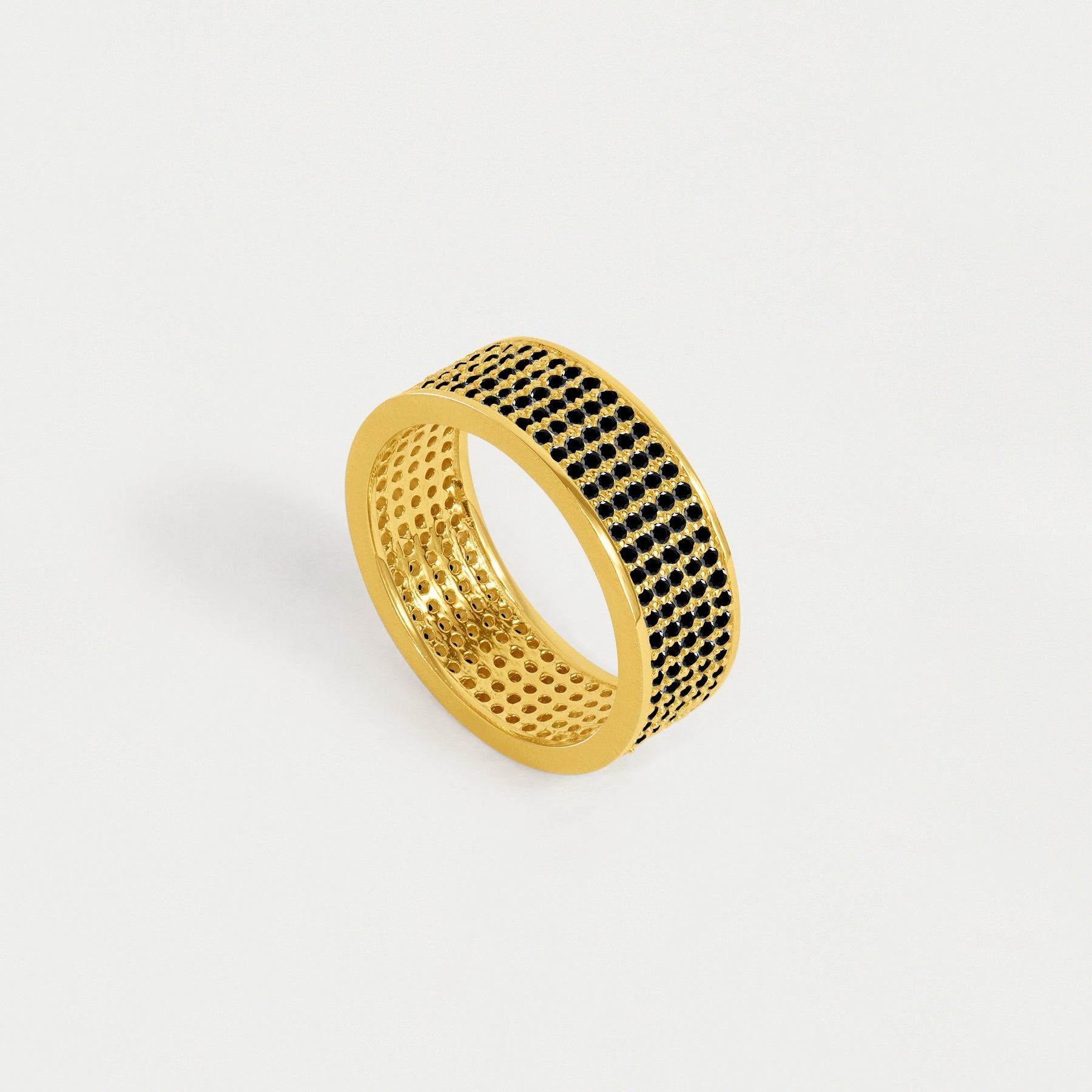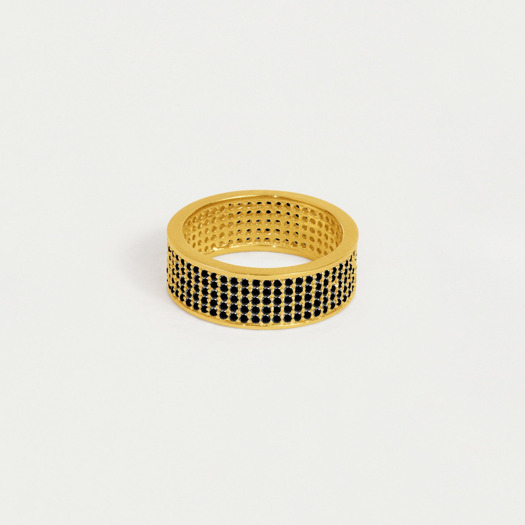 Add instant glamour to your stack with the Black Cubic Zirconia-adorned Petit Pavé Thick Stacking Ring, complete with 5 rows of hand-faceted stones.