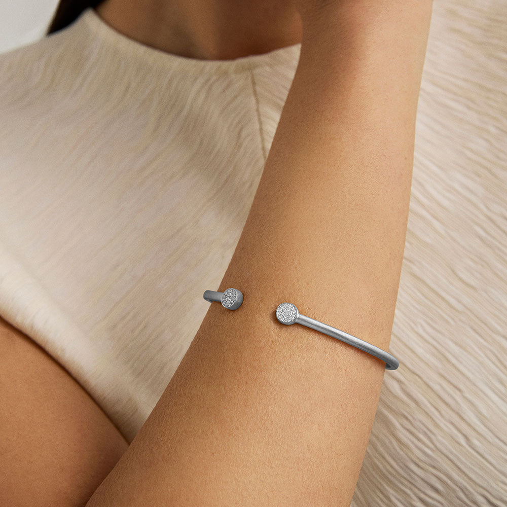 Mirabeau Pavé Open Bangle Bracelet - Silver